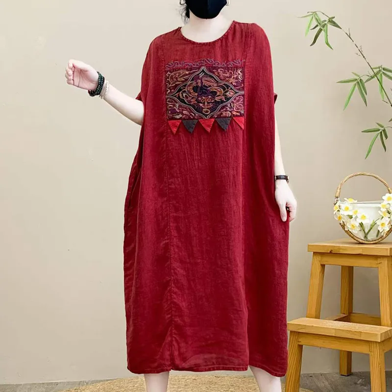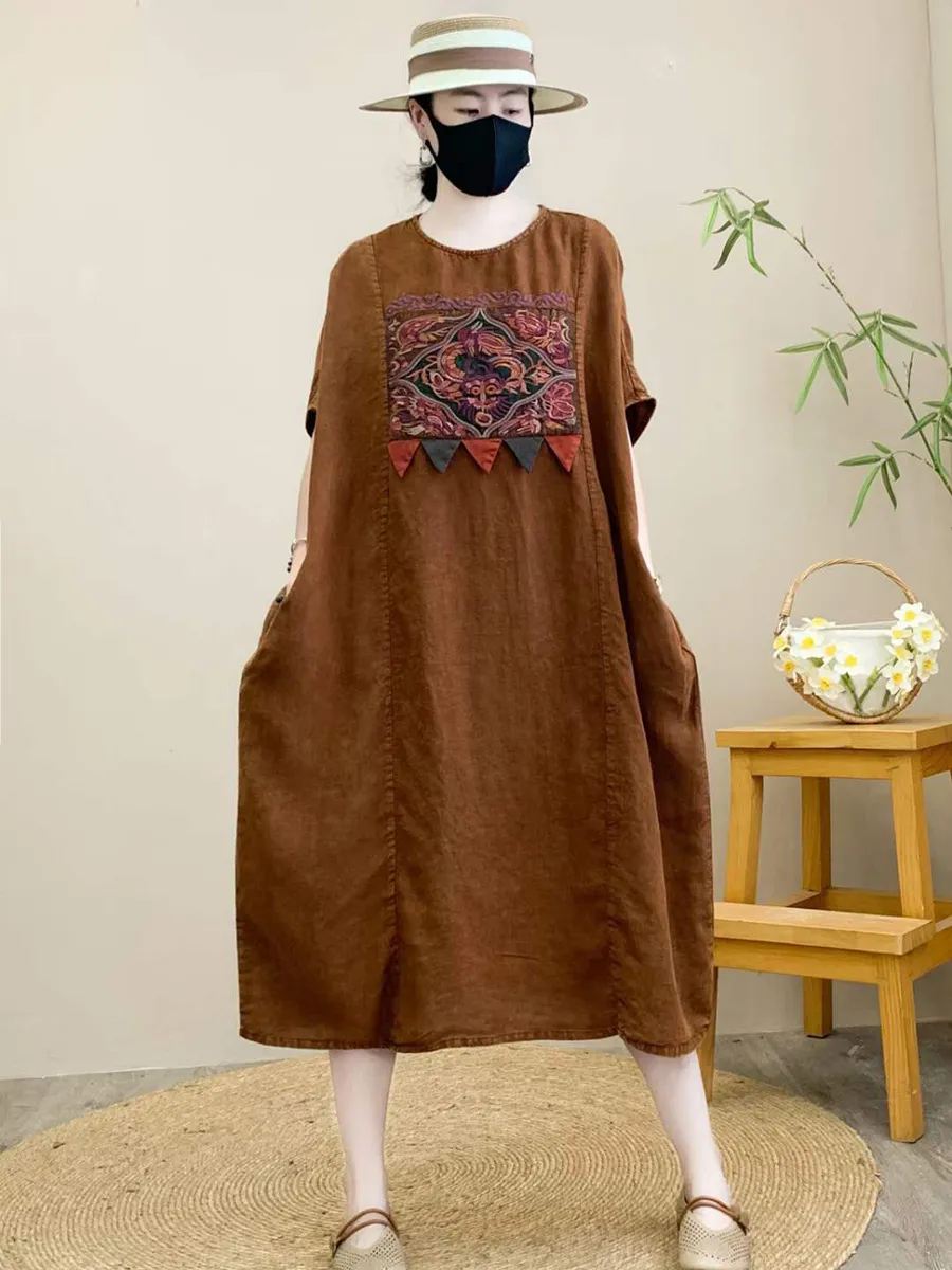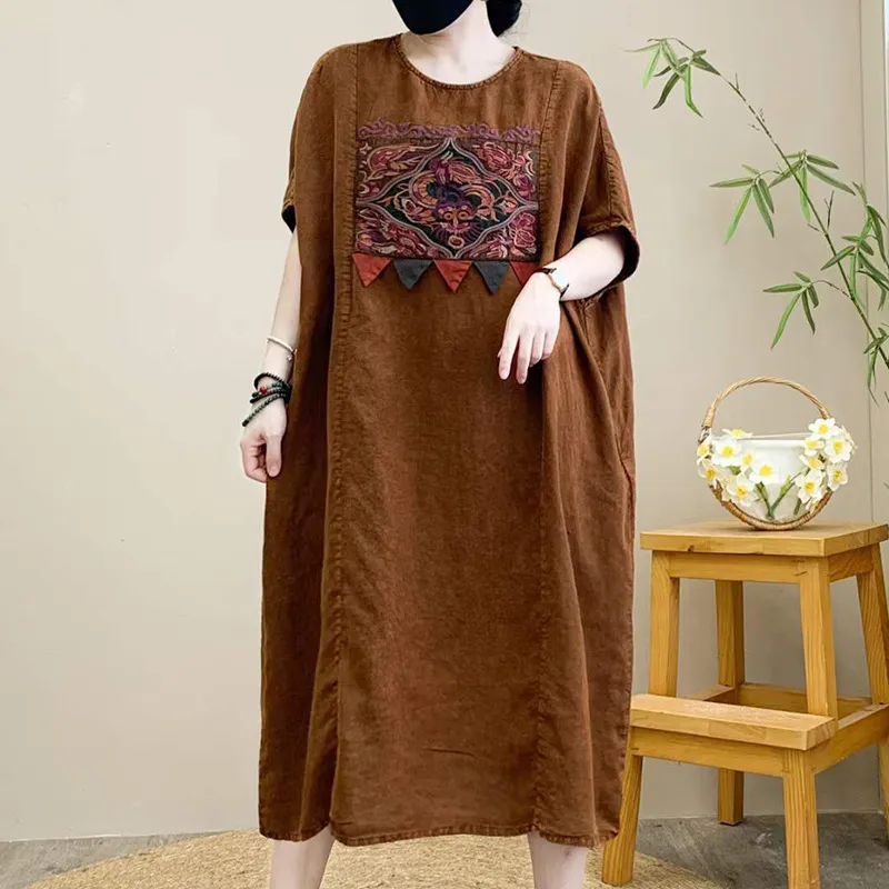 衣都精品- 新款民族風炒色大碼貼布刺繡連衣裙