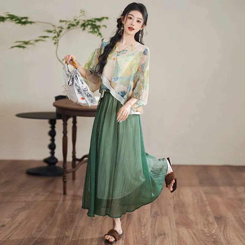 衣都精品- 新款復古中袖漢服吊帶+圓領開襟上衣