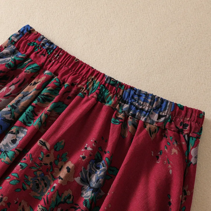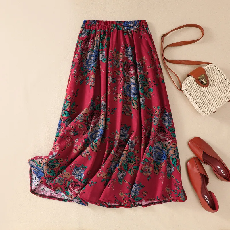 衣都精品- 新款民族風印花顯瘦鬆緊腰半身裙