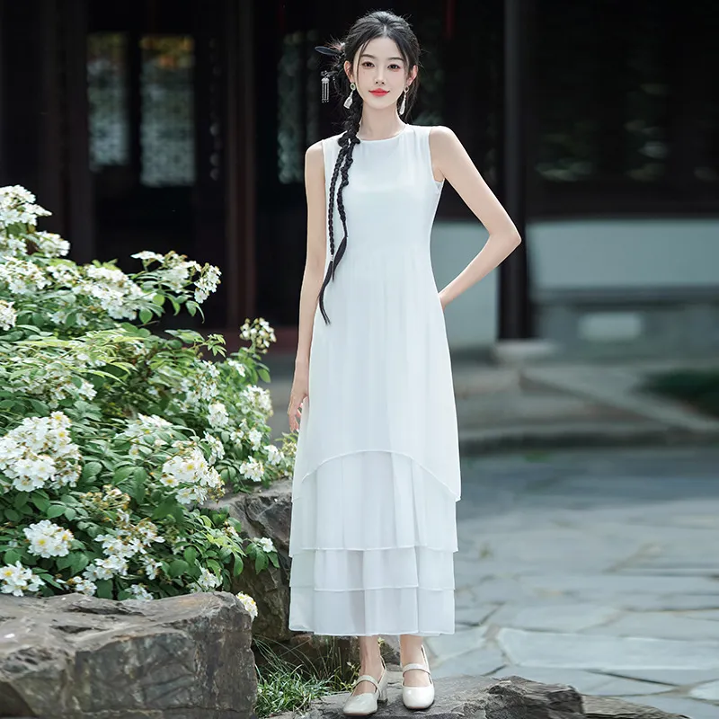 衣都精品- 新款復古圓領唐裝民族風無袖連衣裙