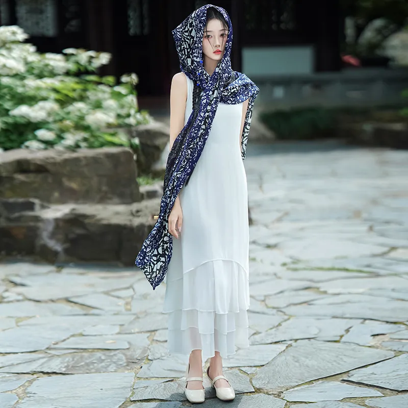 衣都精品- 新款復古圓領唐裝民族風無袖連衣裙
