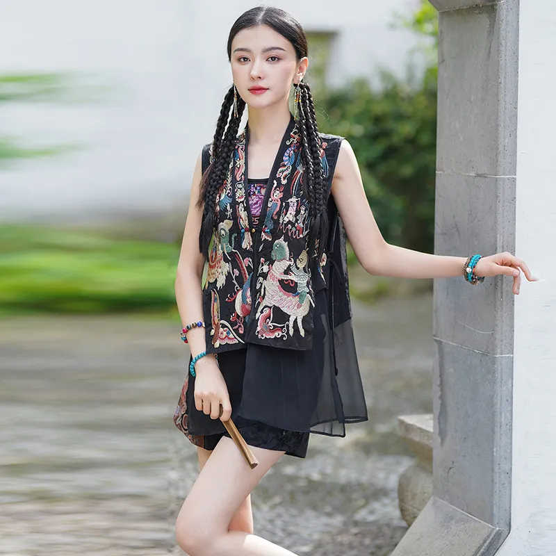 衣都精品- 新款民族風重工刺繡坎肩馬甲薄款上衣