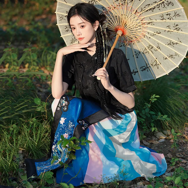 衣都精品- 新款民族風改良中式印花馬面裙
