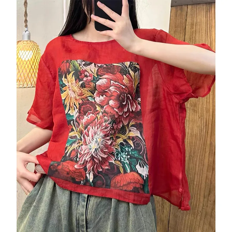 衣都精品- 新款數位印花文藝斜襟盤扣上衣