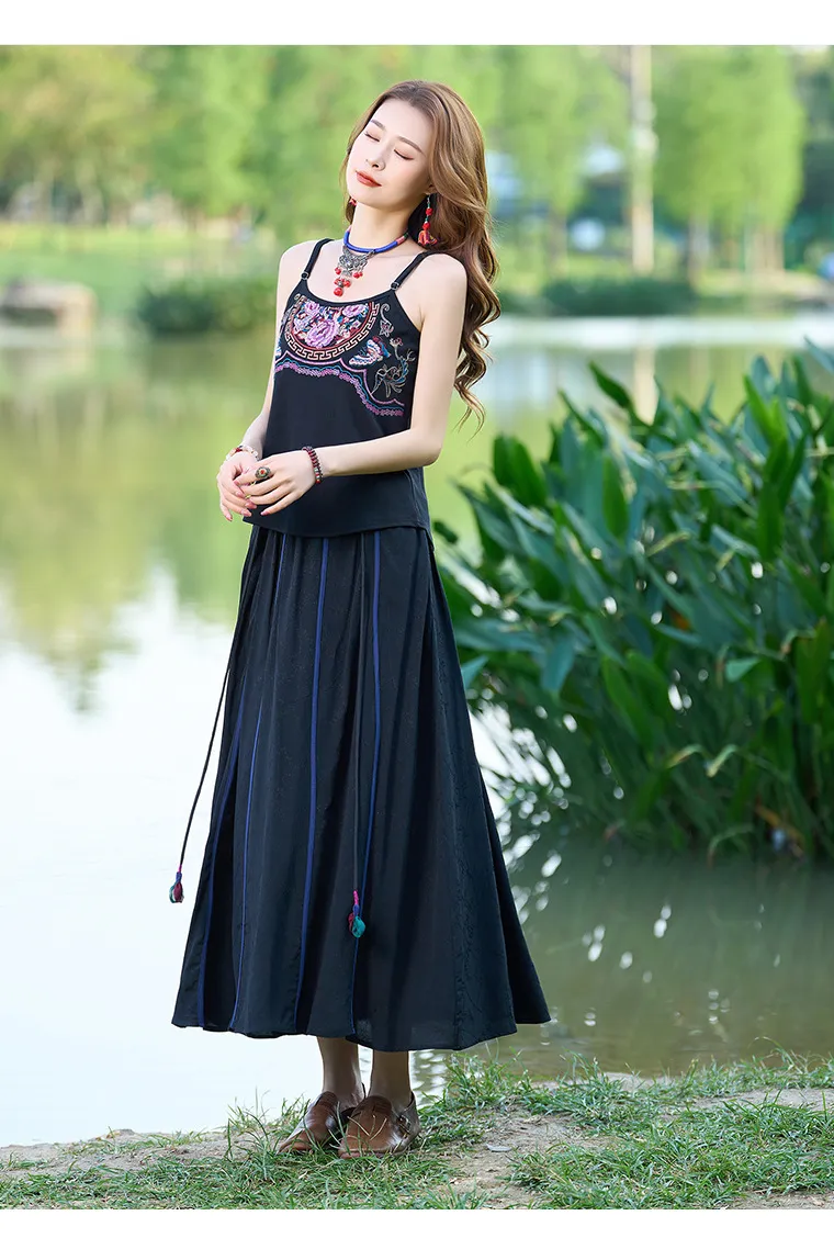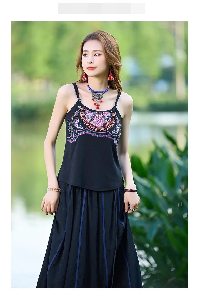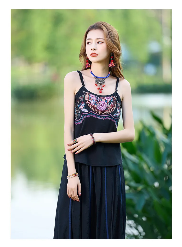 衣都精品- 新款民族風重工刺繡修身百搭吊帶上衣