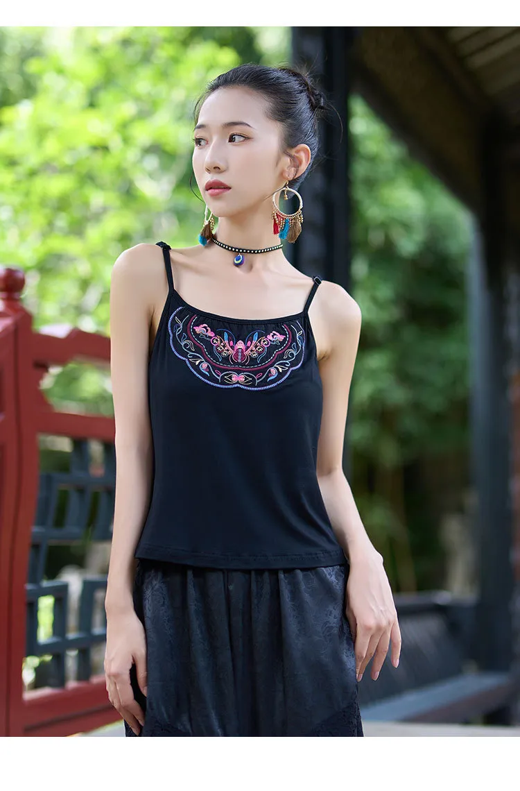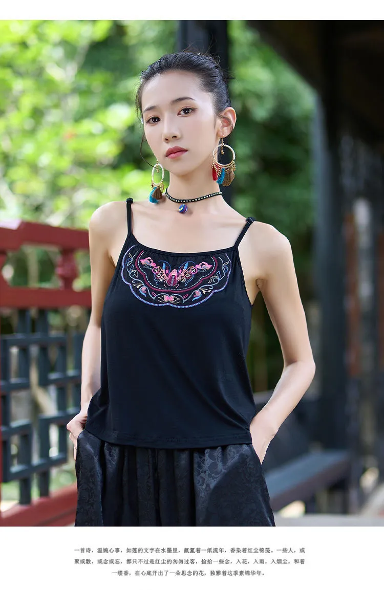 衣都精品- 新款民族風重工刺繡修身百搭吊帶上衣