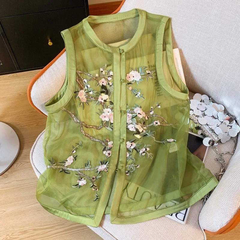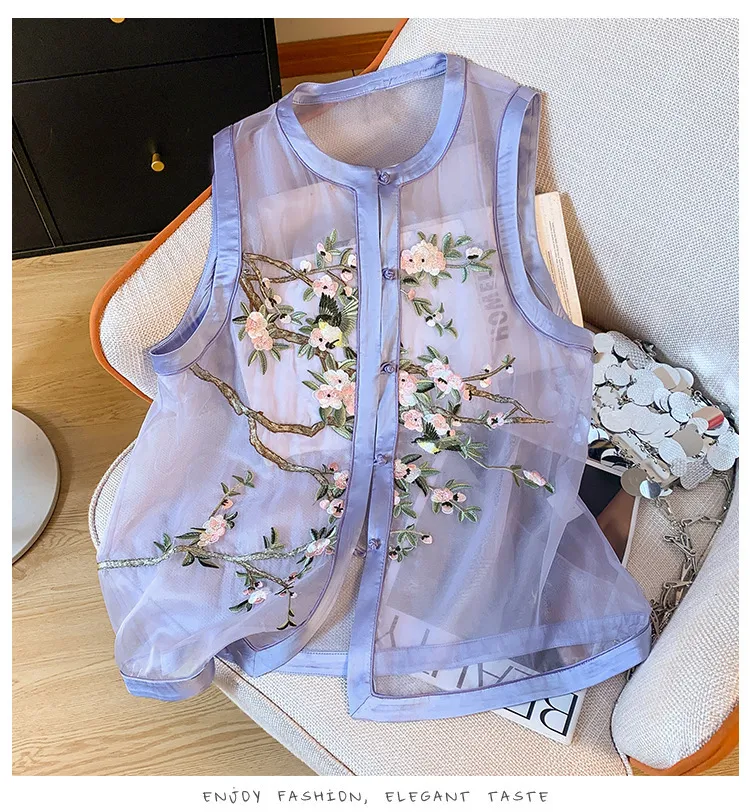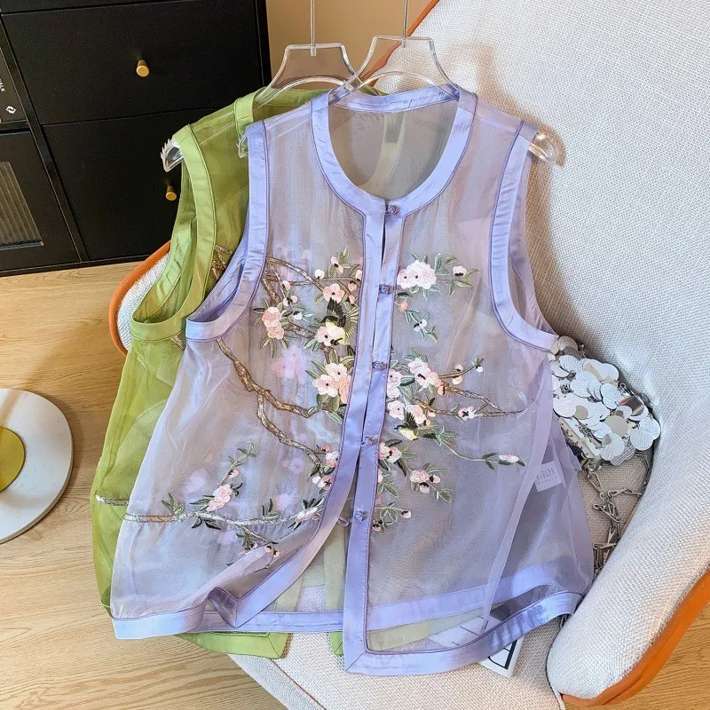 衣都精品- 新款民族風中式刺繡如意紗外搭馬甲上衣