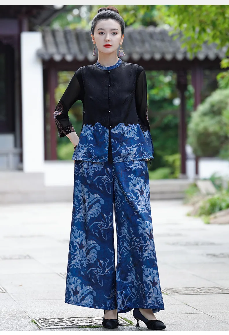 衣都精品- 新款中國風真絲歐根紗立領無袖上衣