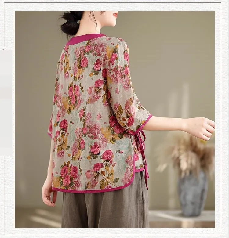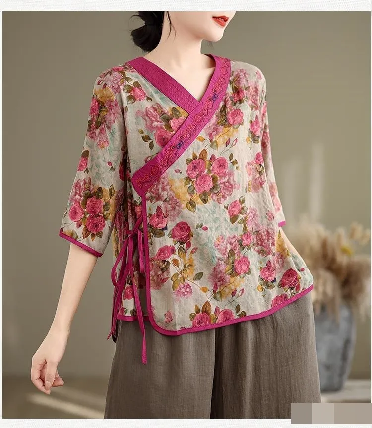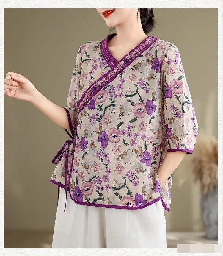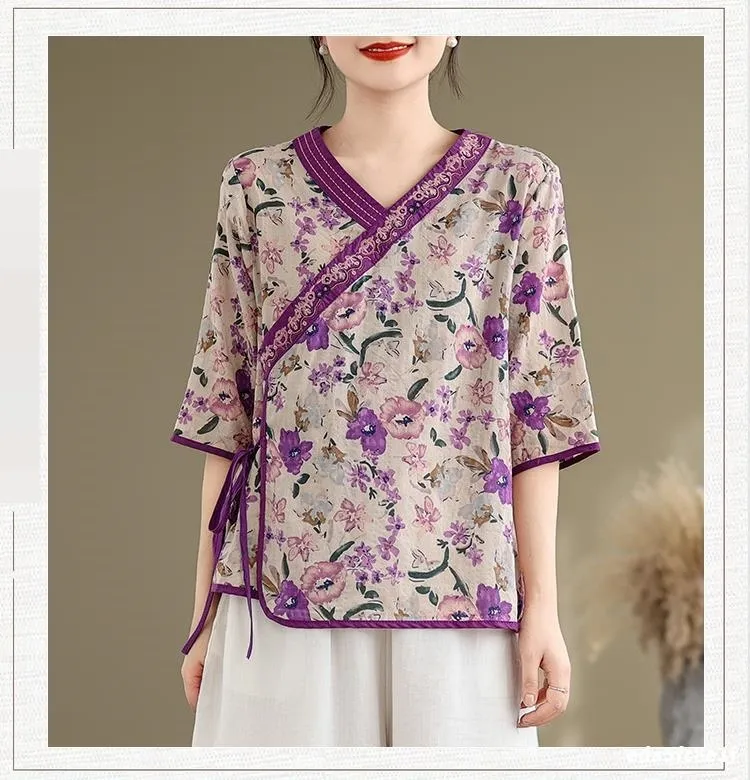 衣都精品- 新款民族風復古斜襟文藝休閒寬鬆上衣