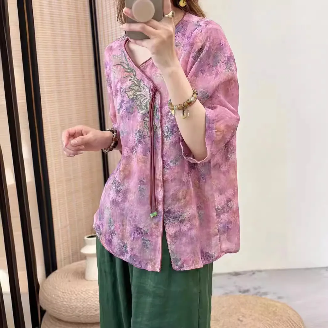 衣都精品- 新款民族風復古斜襟文藝休閒寬鬆上衣