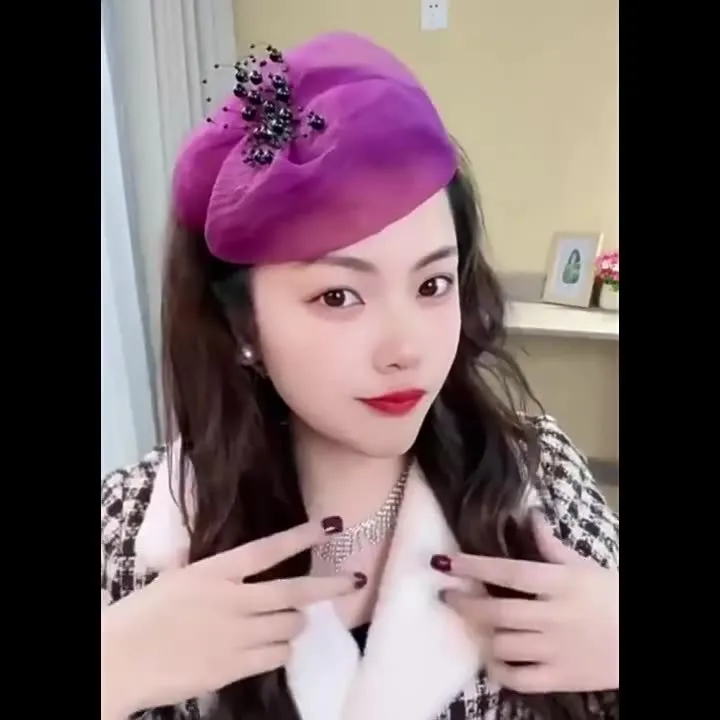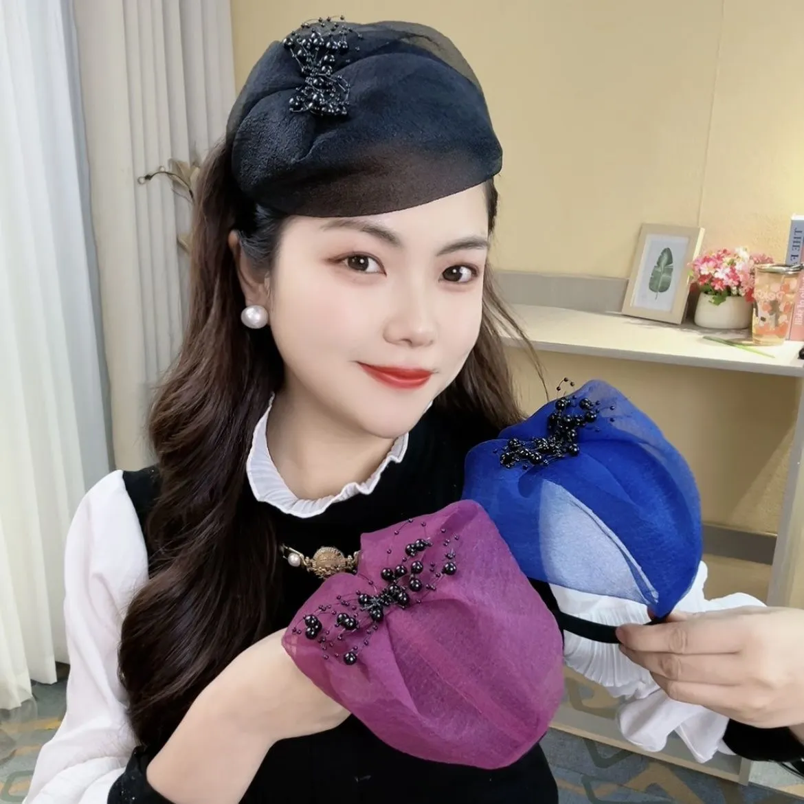 衣都精品- 新款網紗歐根紗串珠氣質禮帽
