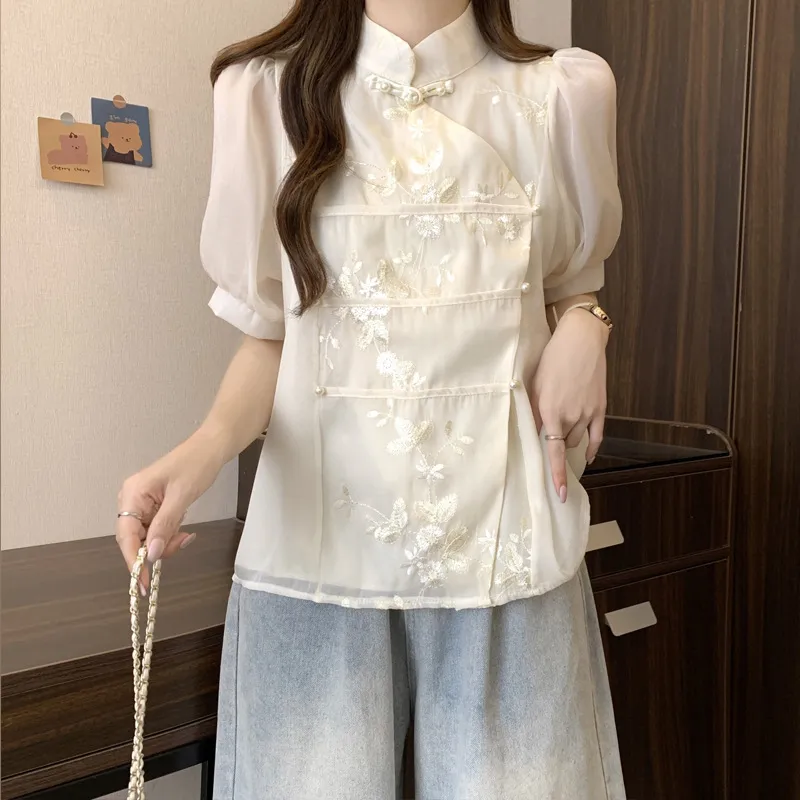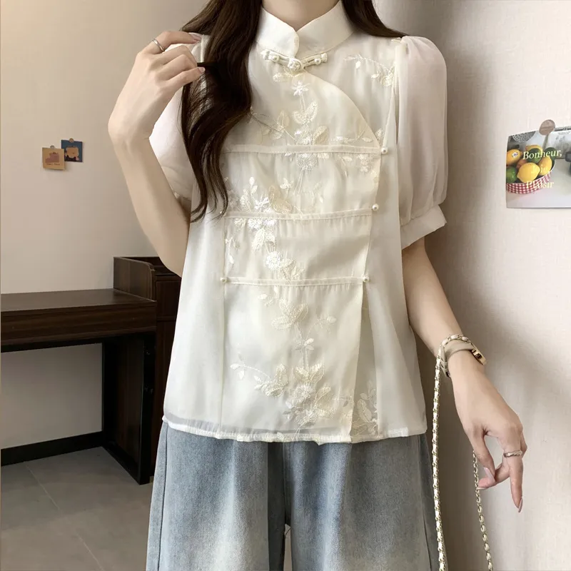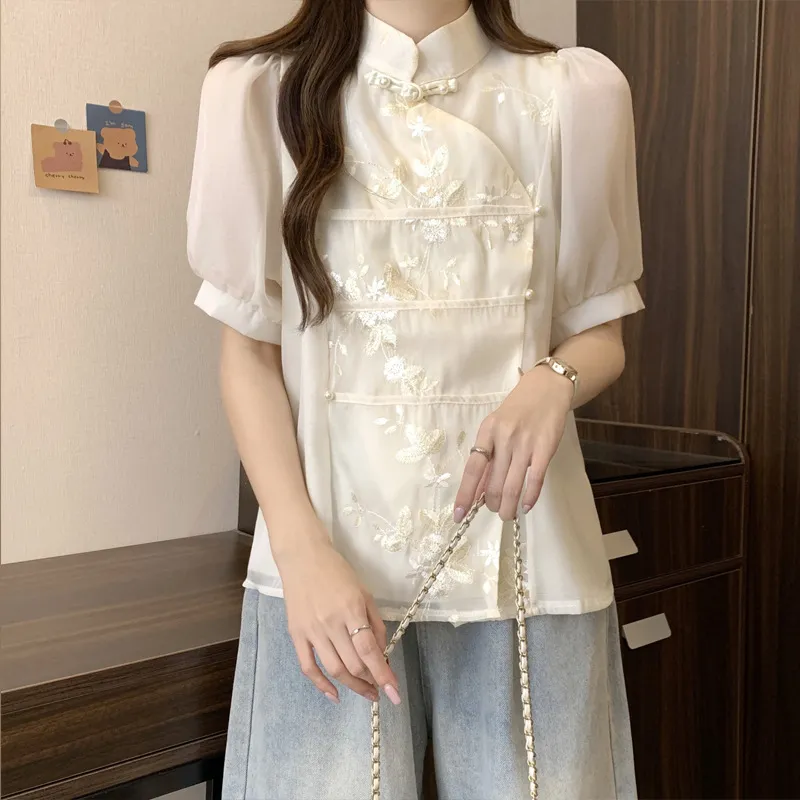 衣都精品- 新款復古中國風改良提花盤扣短袖上衣