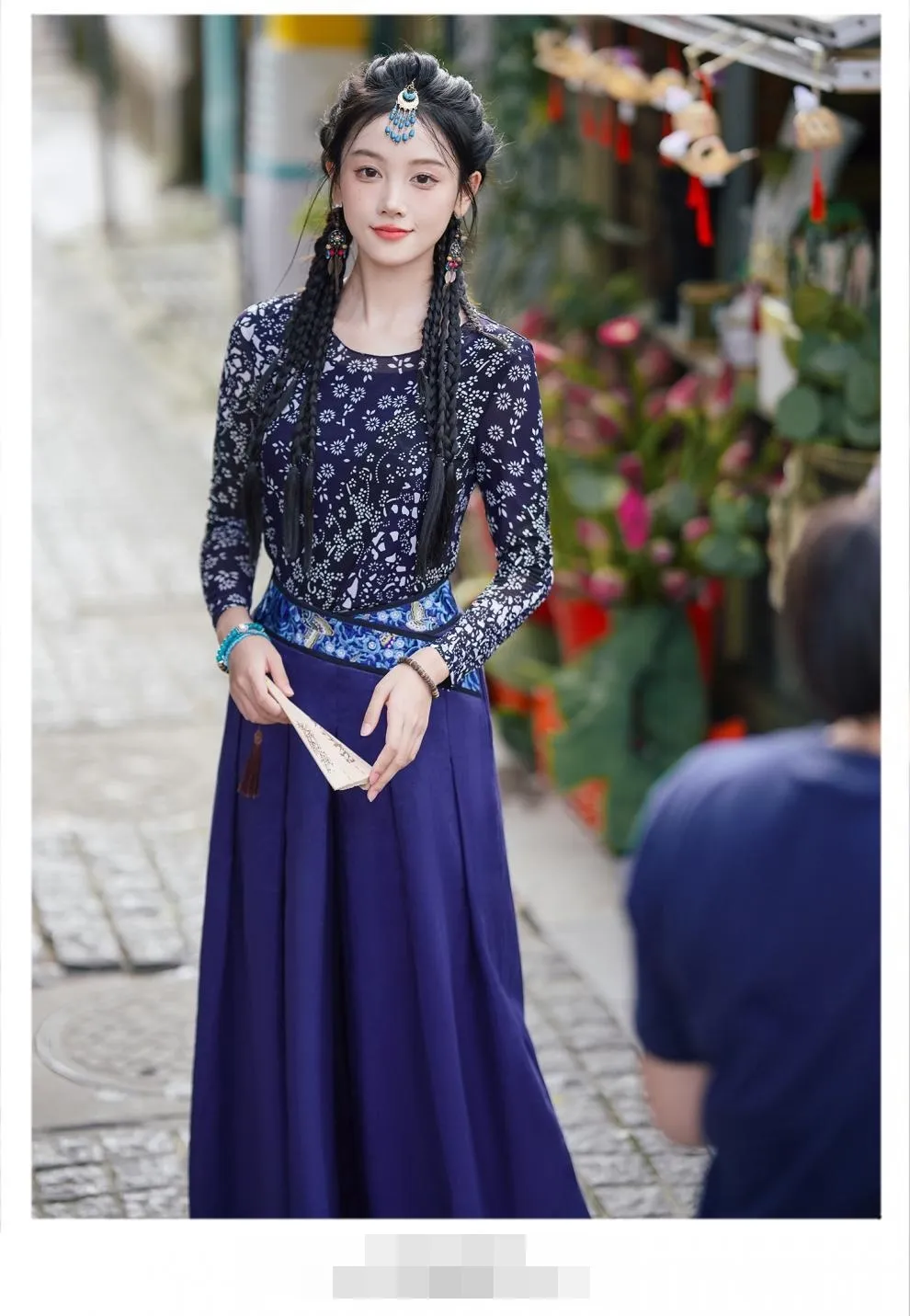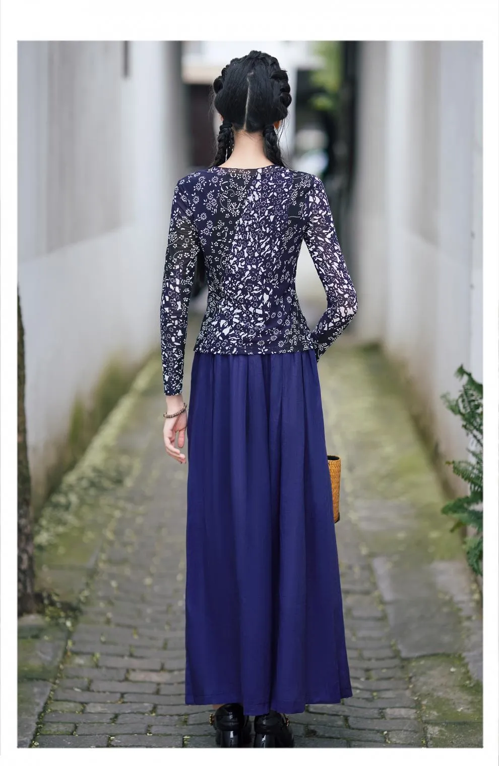 衣都精品- 新款復古刺繡下擺拼紗中袖開襟上衣