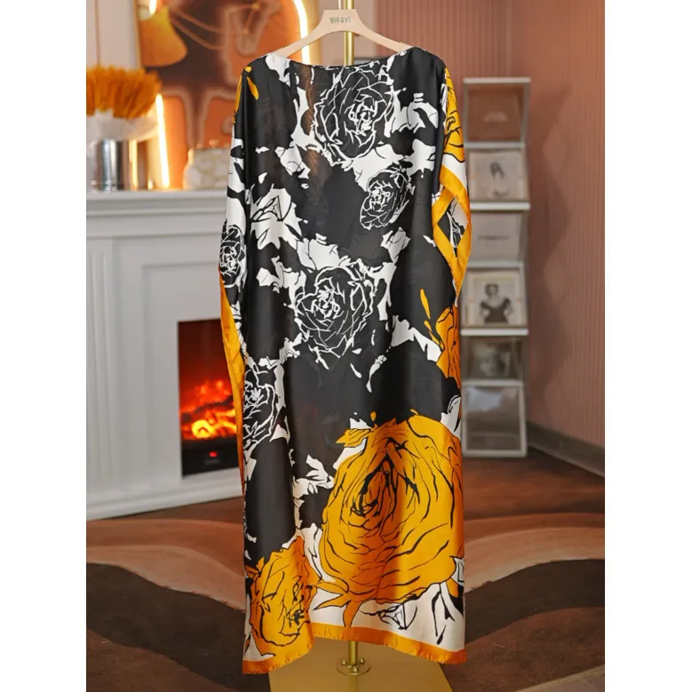 衣都精品- 新款中式度假風穿搭緞面圍巾披肩連衣裙兩穿