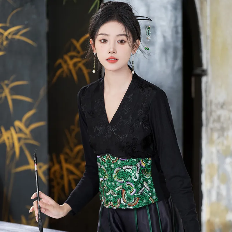 衣都精品- 新款中式改良盤扣斜襟圓領提花刺繡七分袖上衣