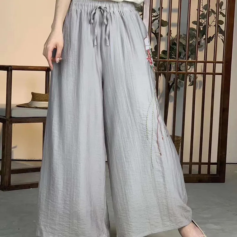 衣都精品- 新款文藝鬆緊腰大碼雙層九分直筒褲