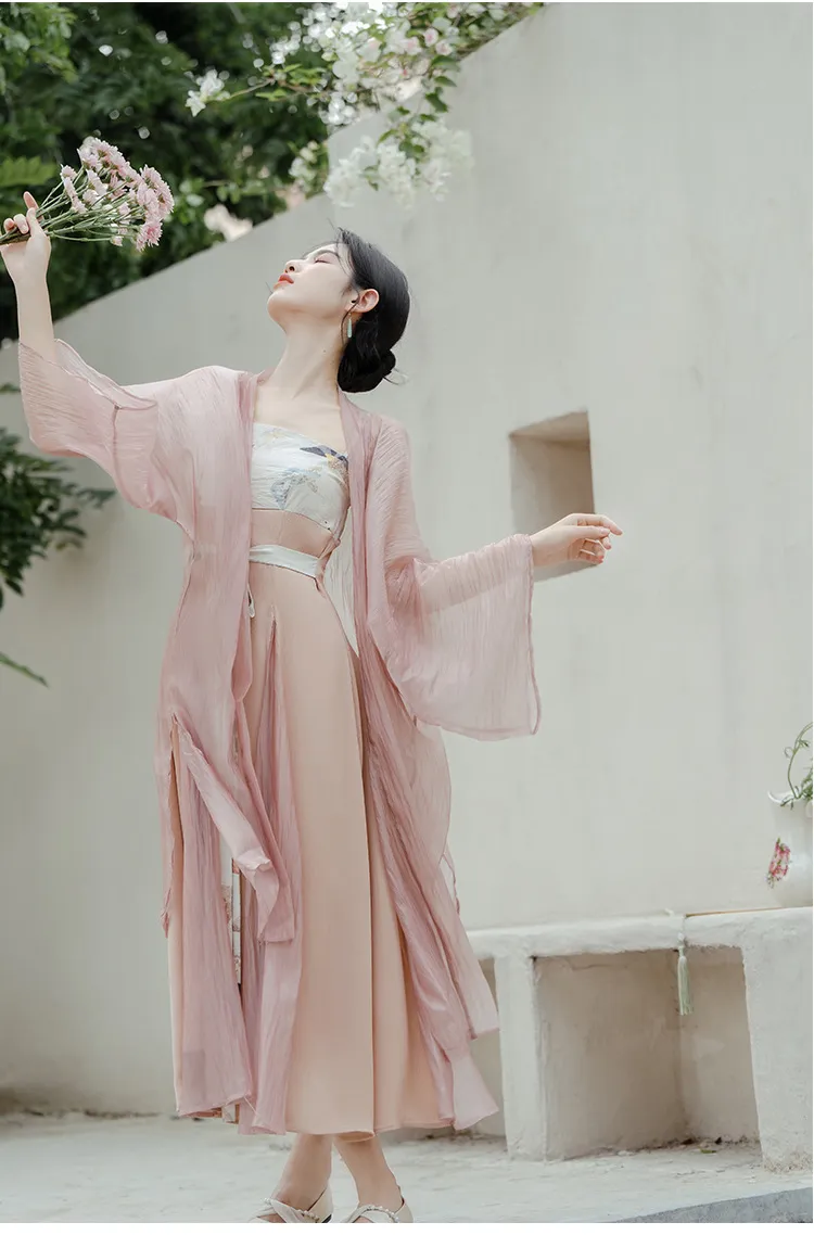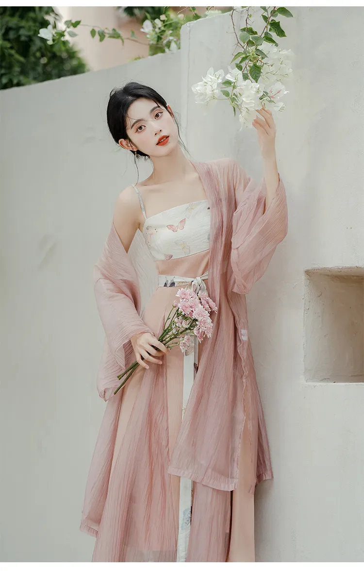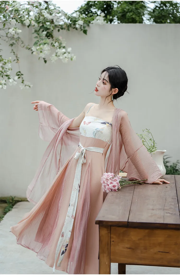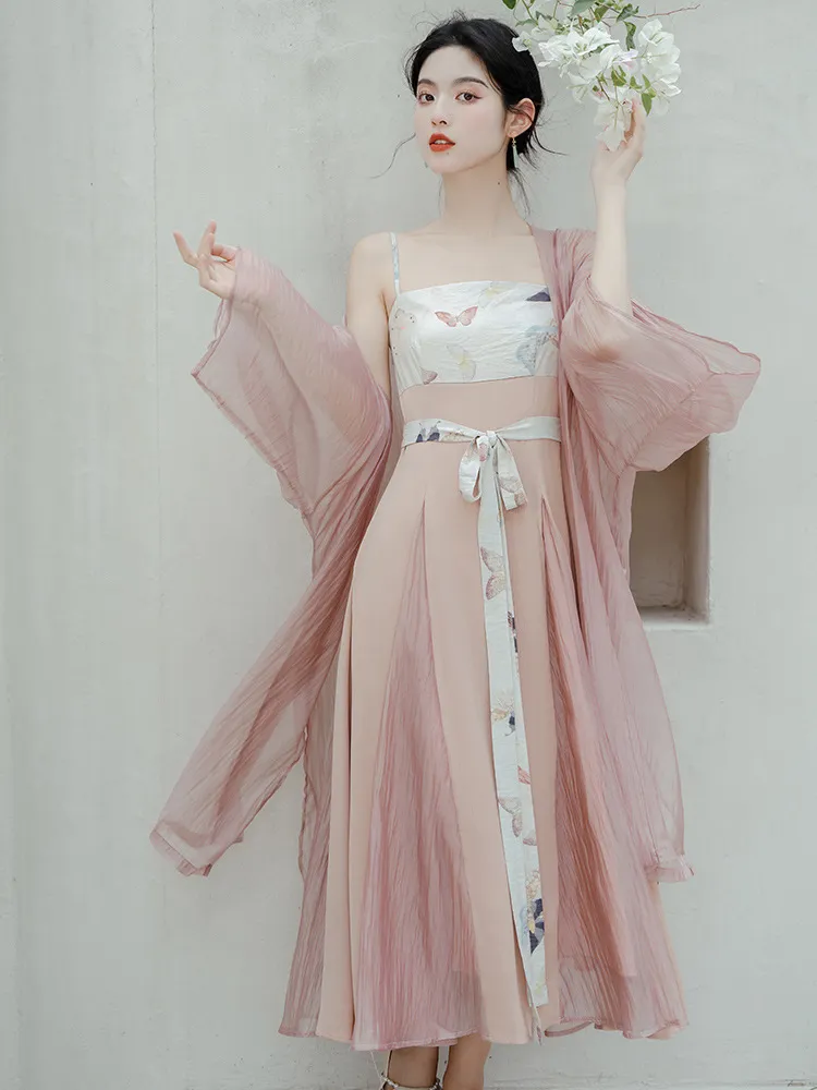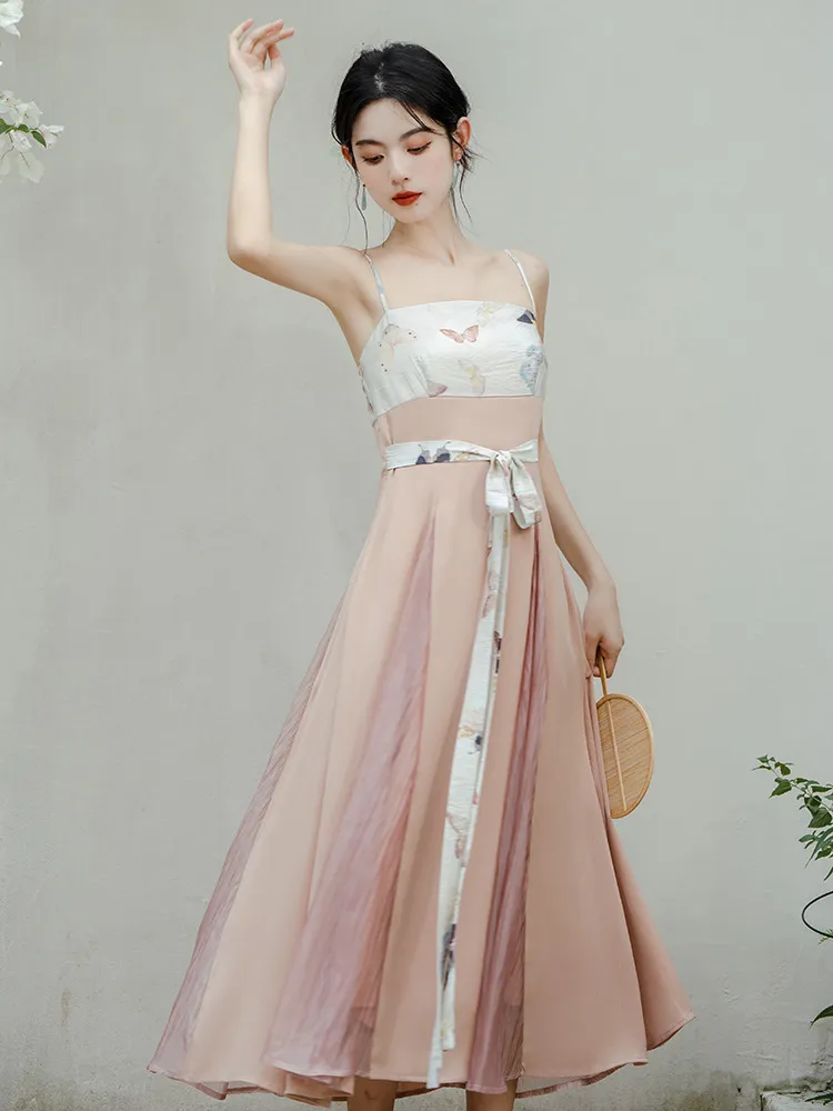 衣都精品- 新款復古改良漢服印花吊帶連身裙+外套兩件式套裝