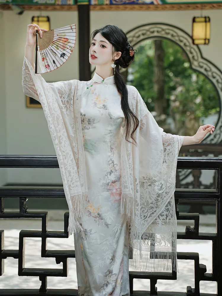 衣都精品- 新款復古改良漢服印花吊帶連身裙+外套兩件式套裝