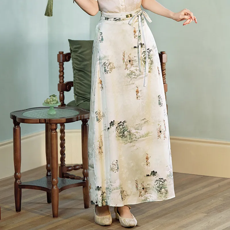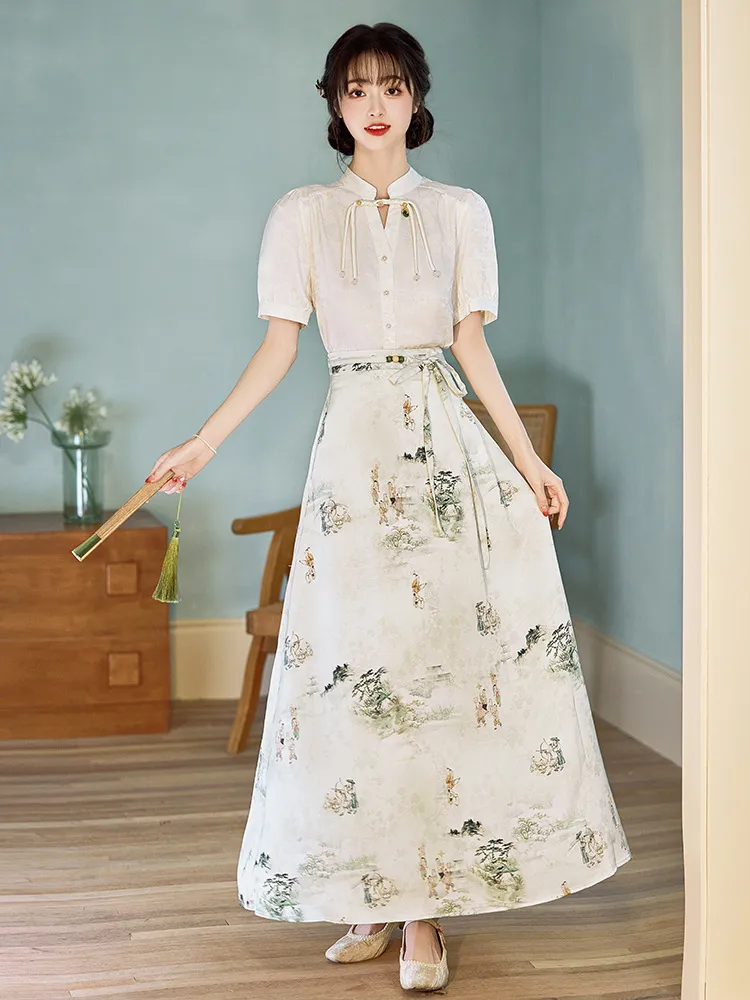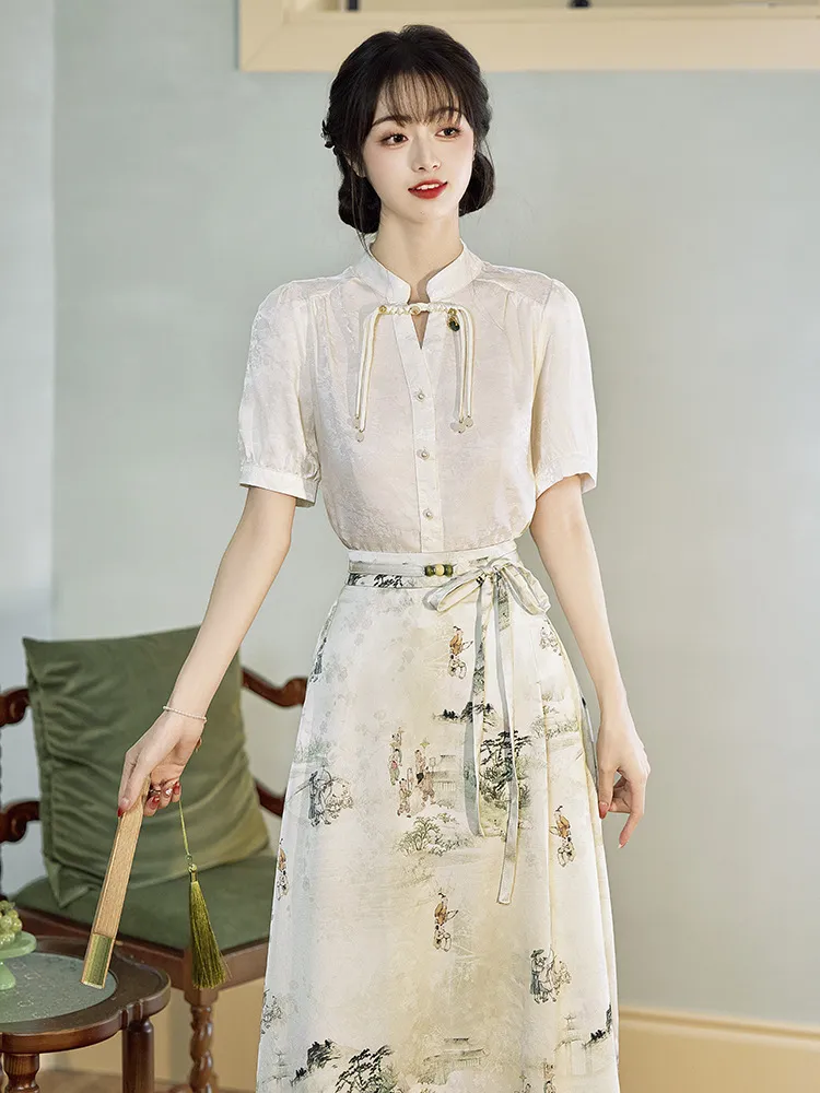 衣都精品- 新款中式復古盤扣修身上衣+水墨印染半身裙兩件式套裝