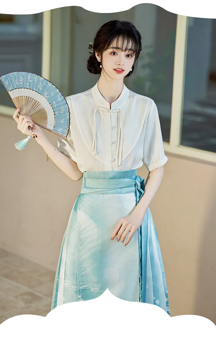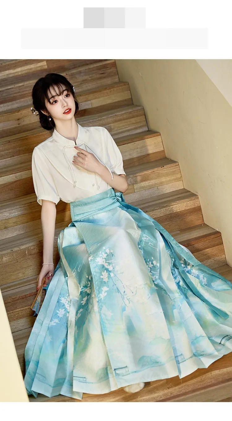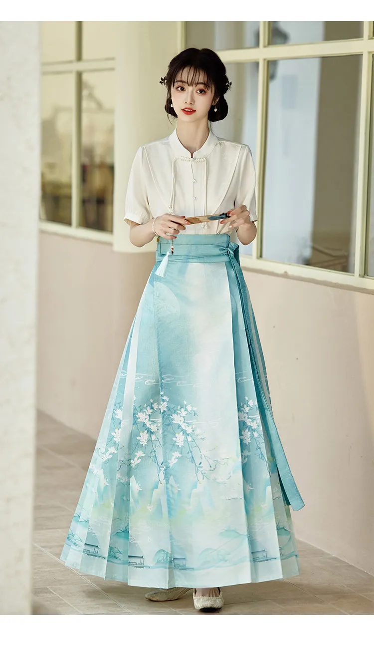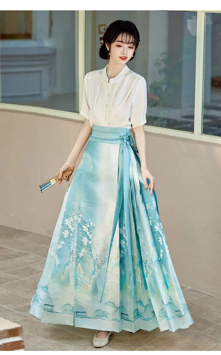衣都精品- 新款時尚一片式百褶大擺印花馬面裙