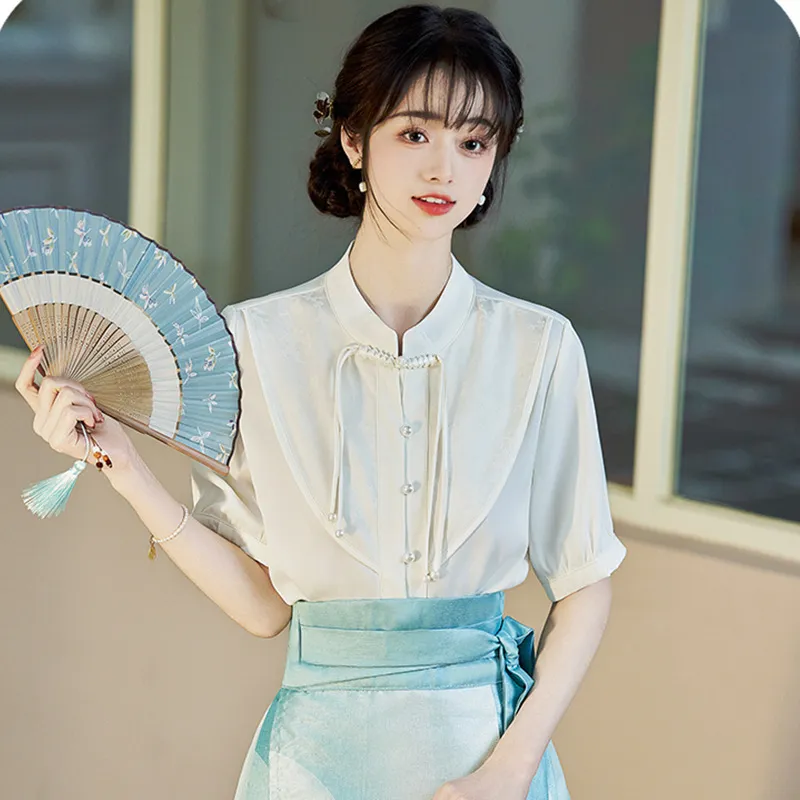 衣都精品- 新款中式復古立領短袖典雅貴氣上衣