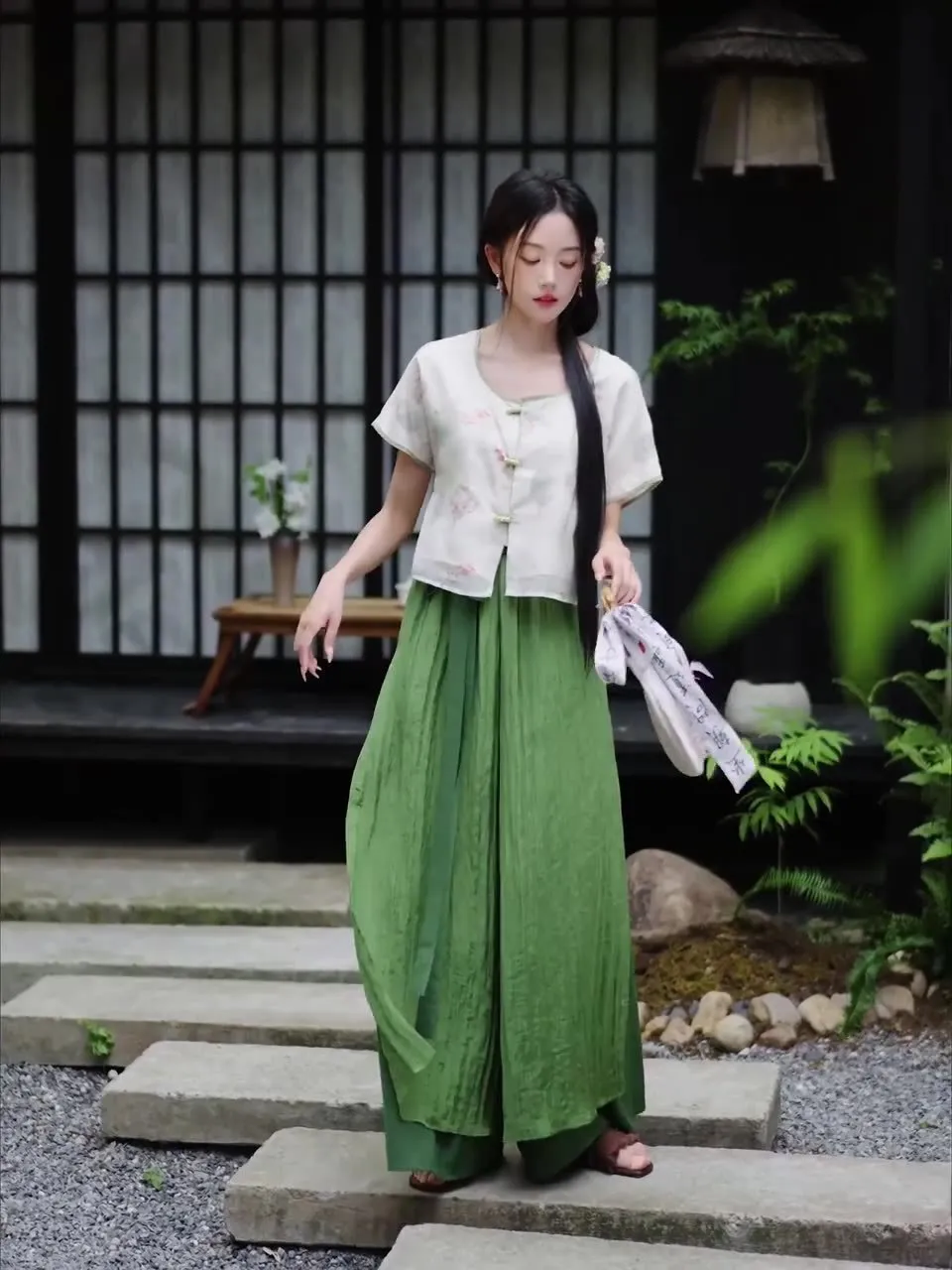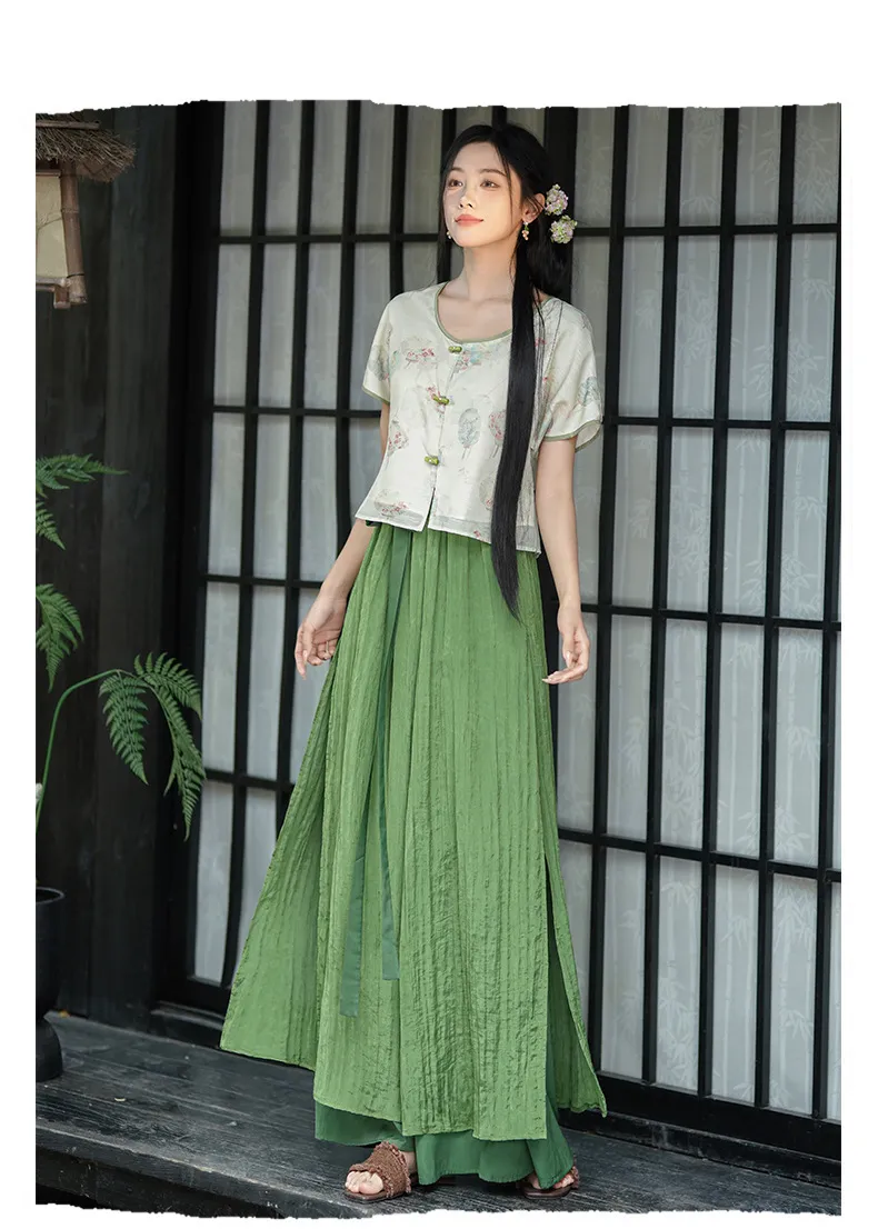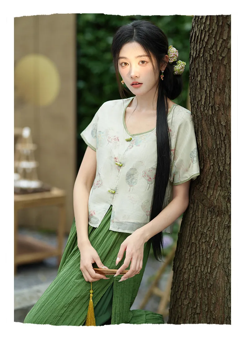 衣都精品- 新款中式吊帶V領短袖開襟上衣+吊帶