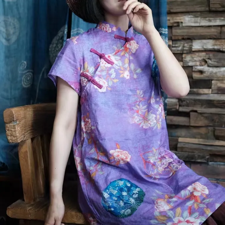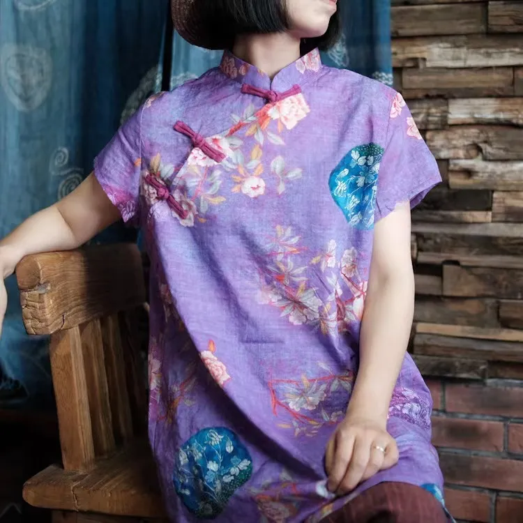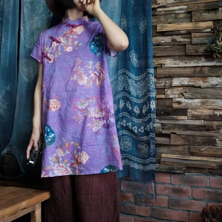 衣都精品- 新款復古純棉立領斜襟盤扣短袖上衣