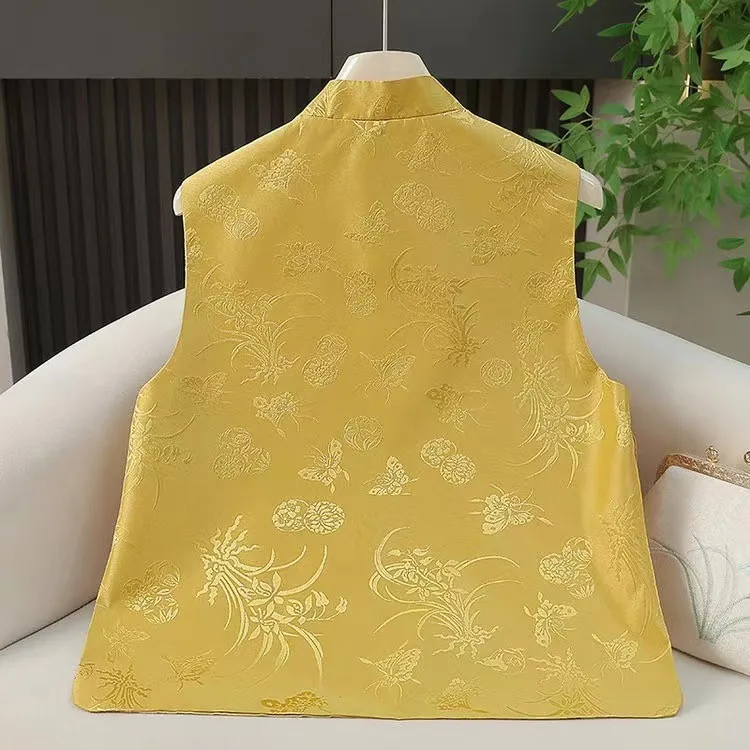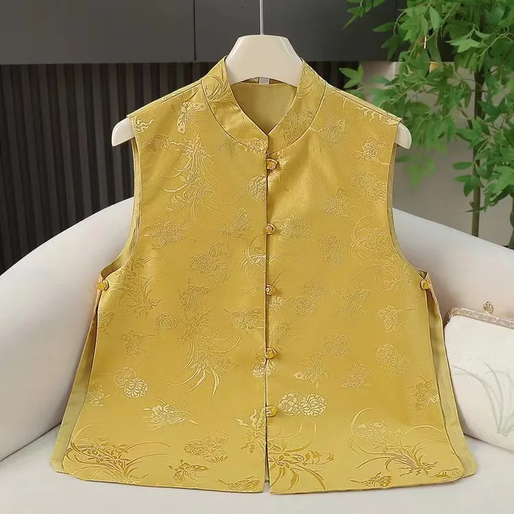 衣都精品- 新款文藝復古緞面提花大碼馬夾上衣
