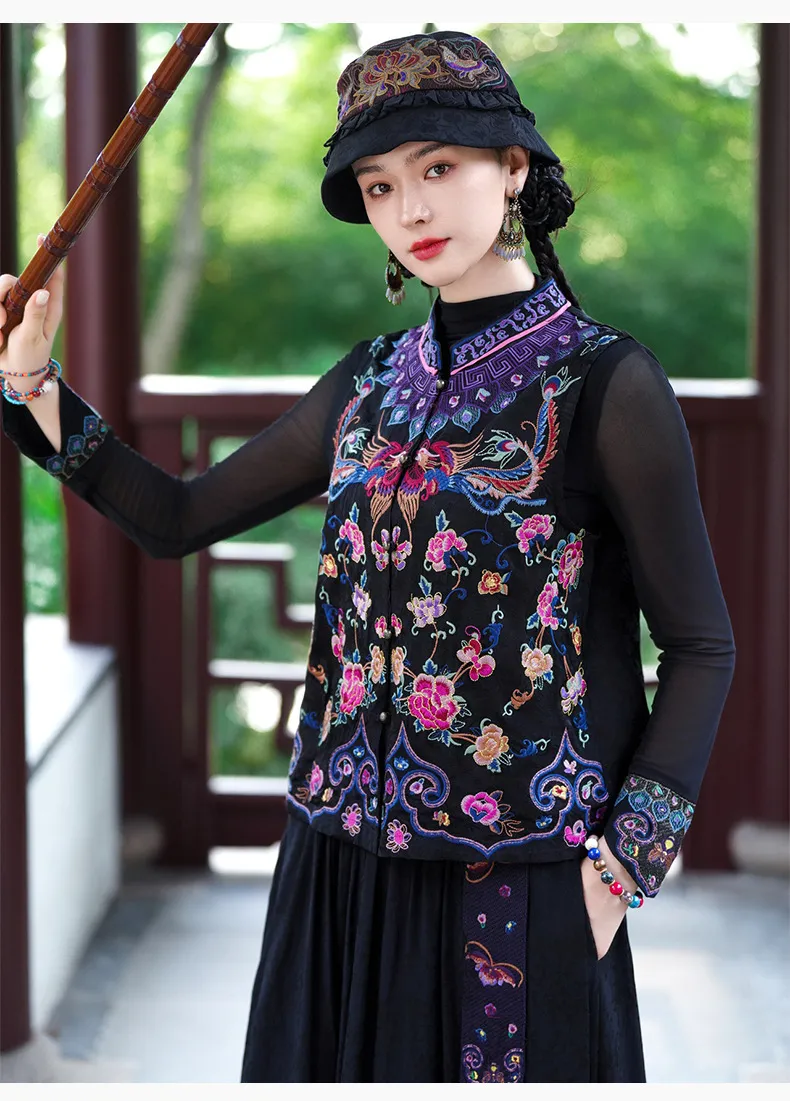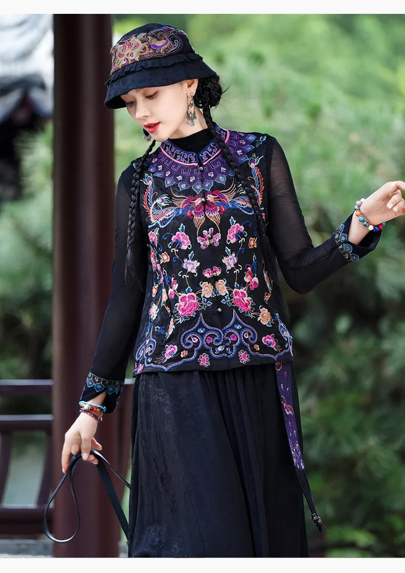 衣都精品- 新款復古重工刺繡開襟盤扣V領短外套