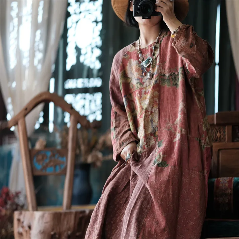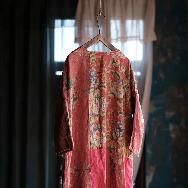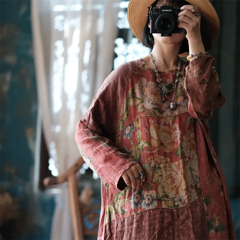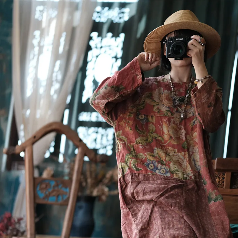 衣都精品- 新款民族風拼布圓領大袍百搭連衣裙