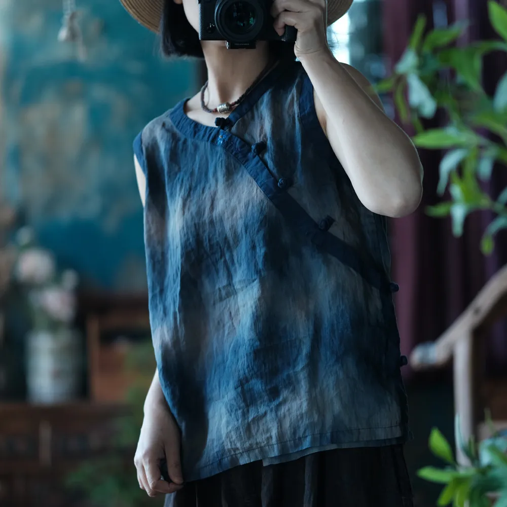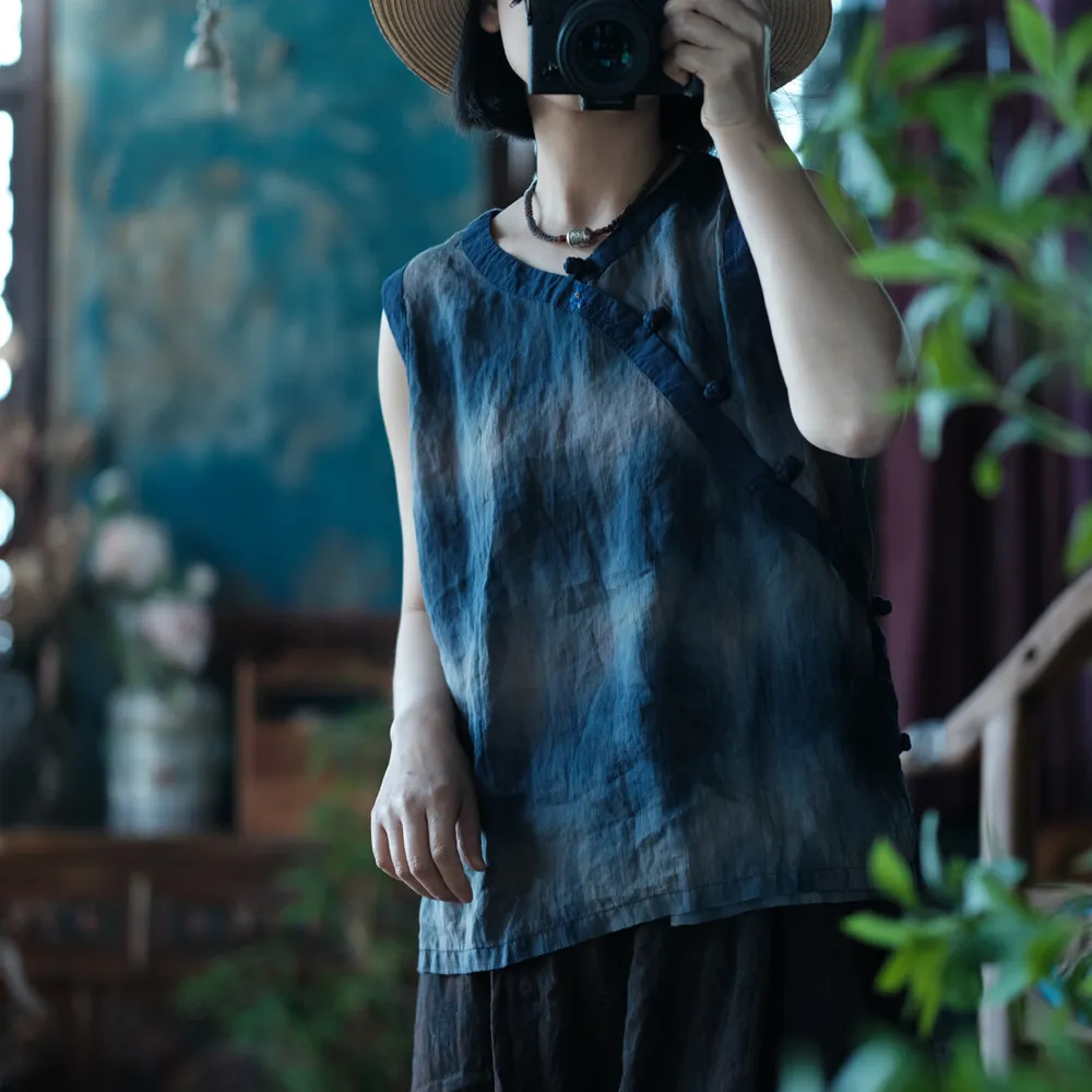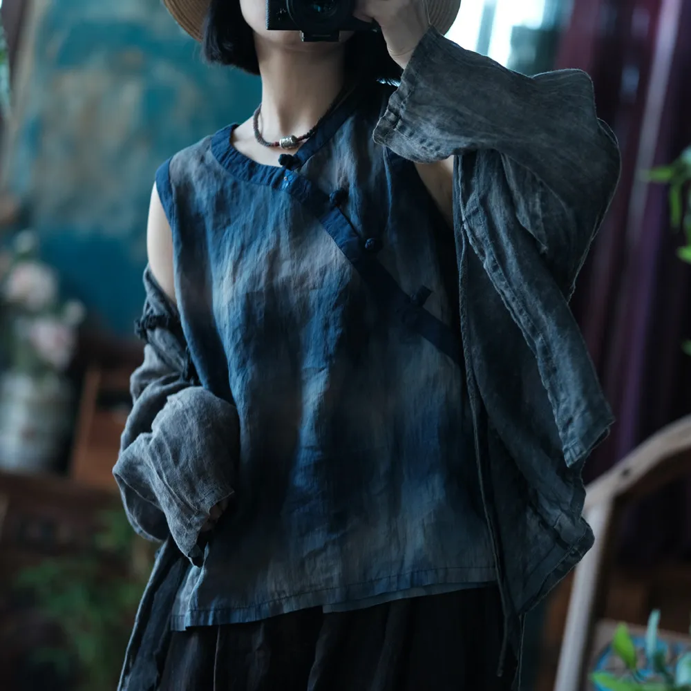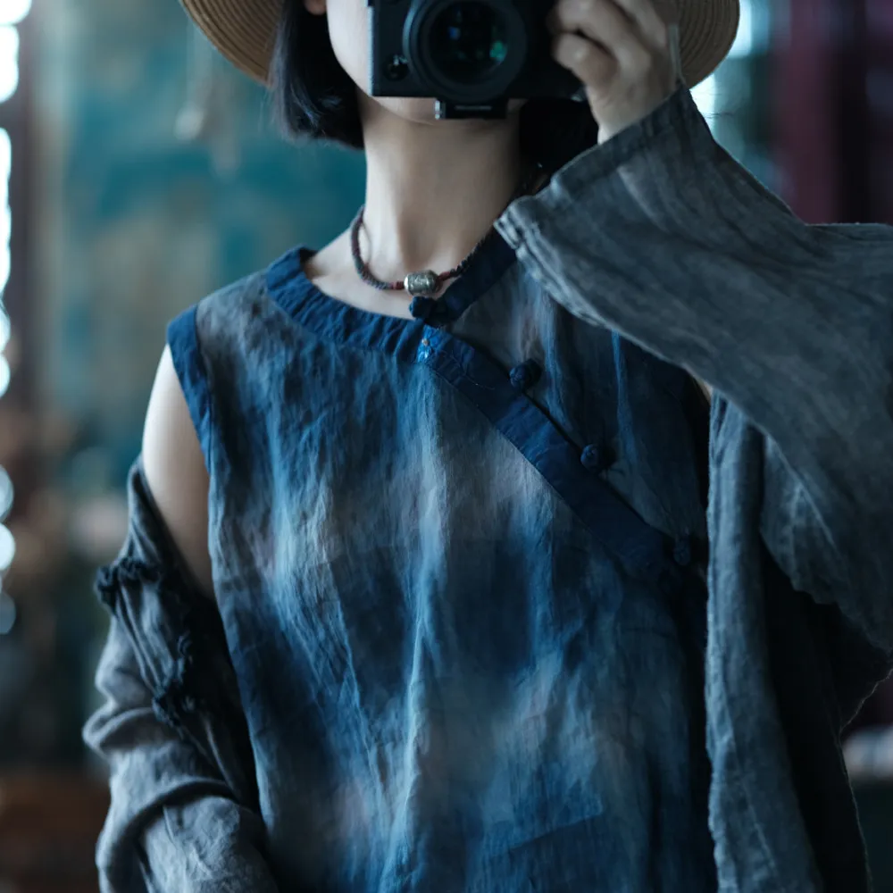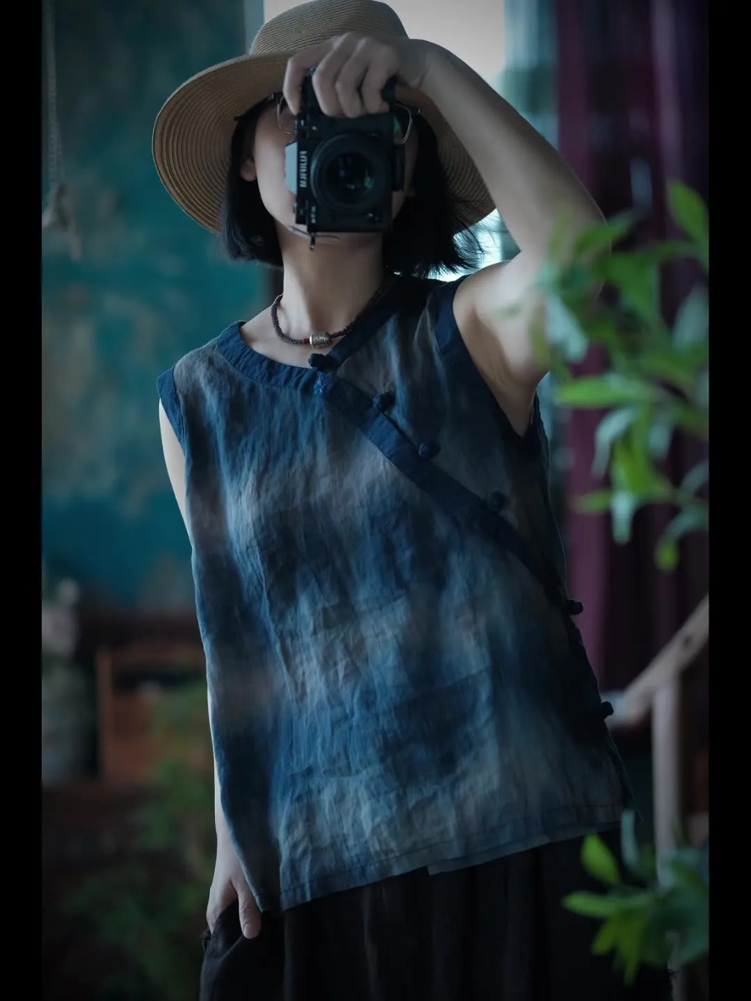衣都精品- 新款訂製款中式改良色織苧麻盤扣無袖上衣
