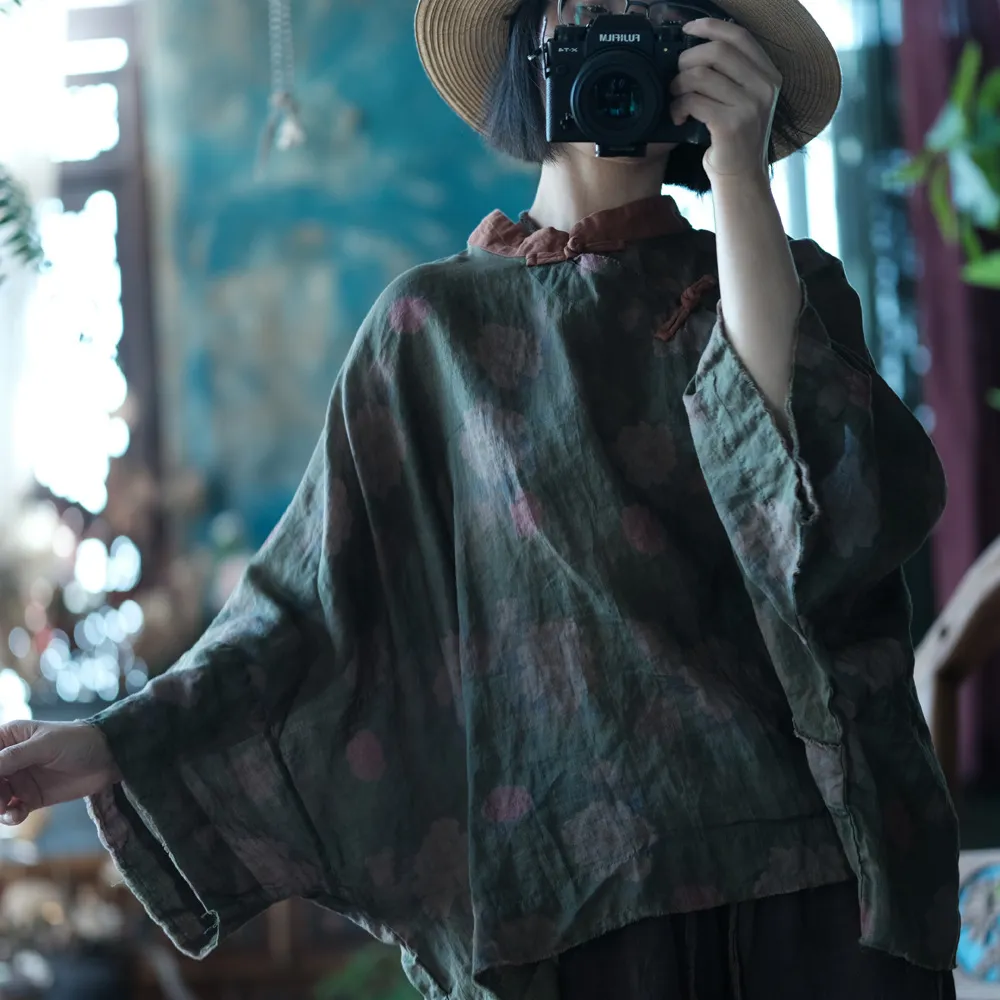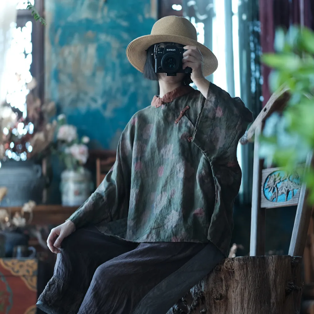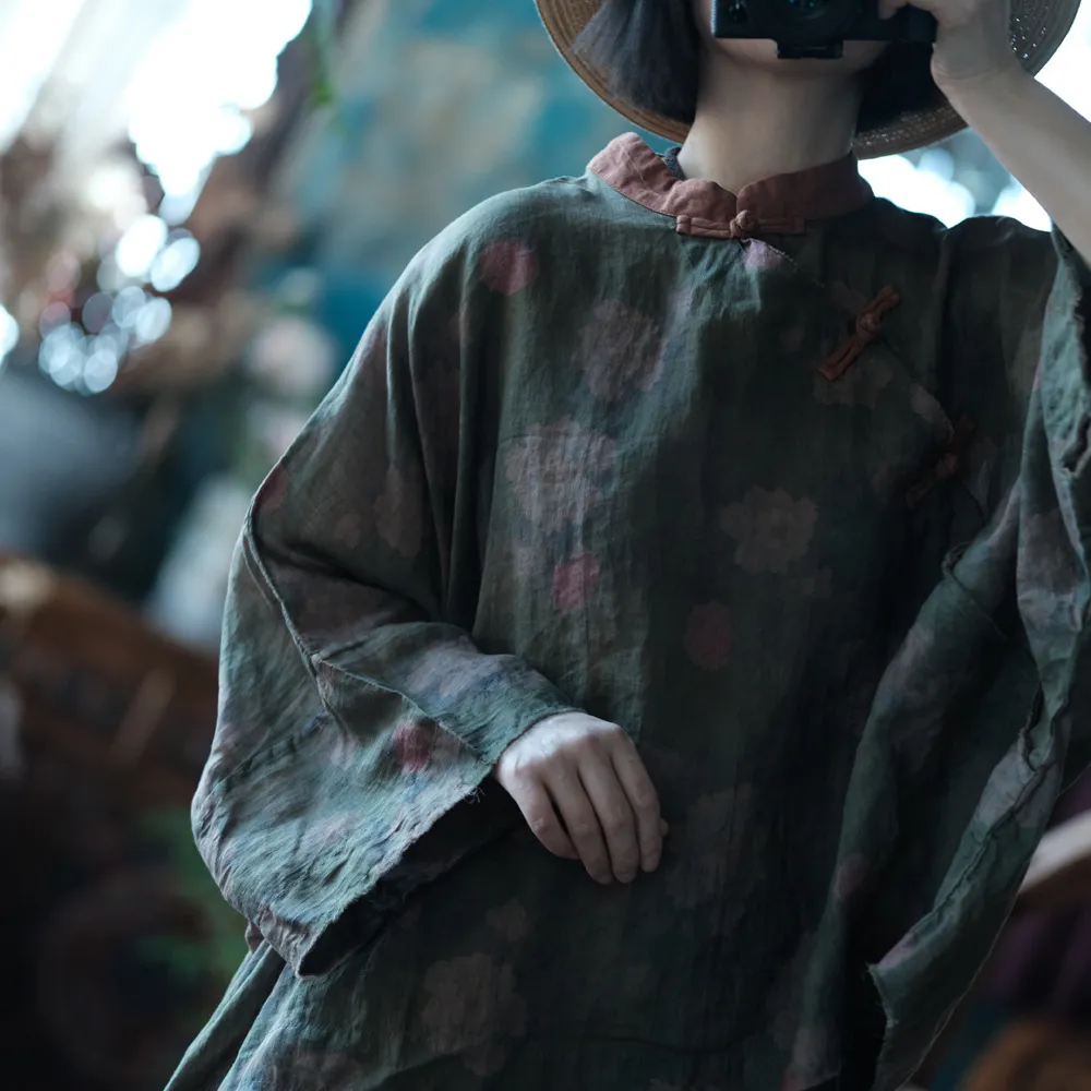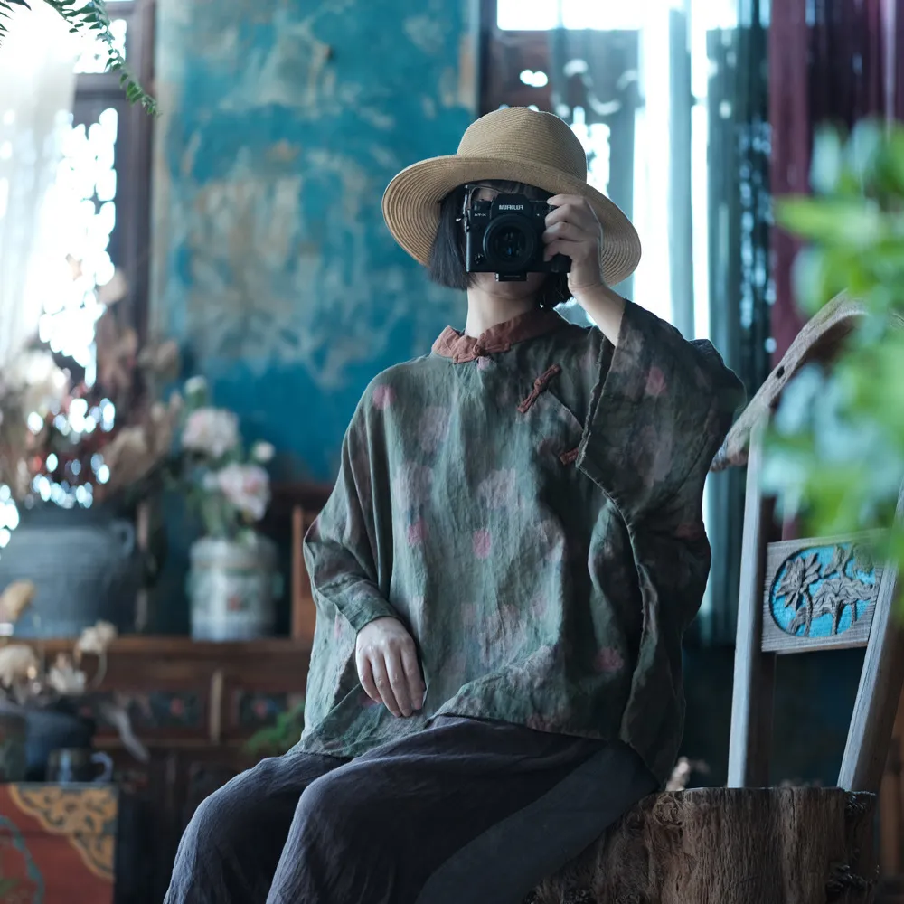 衣都精品- 新款復古苧麻寬鬆百搭斜襟盤扣上衣