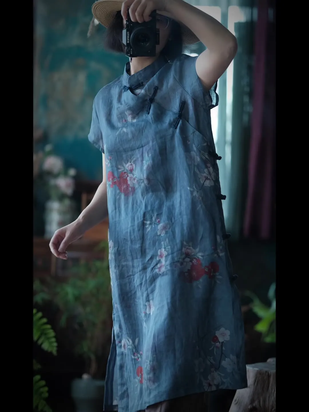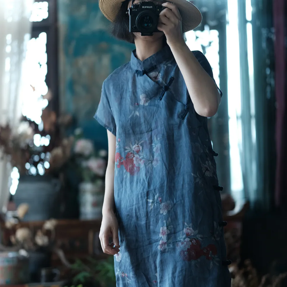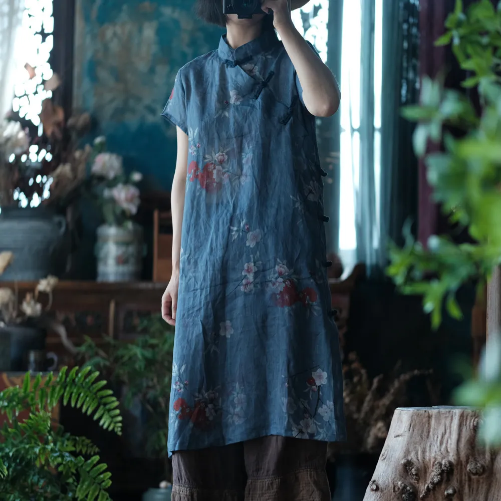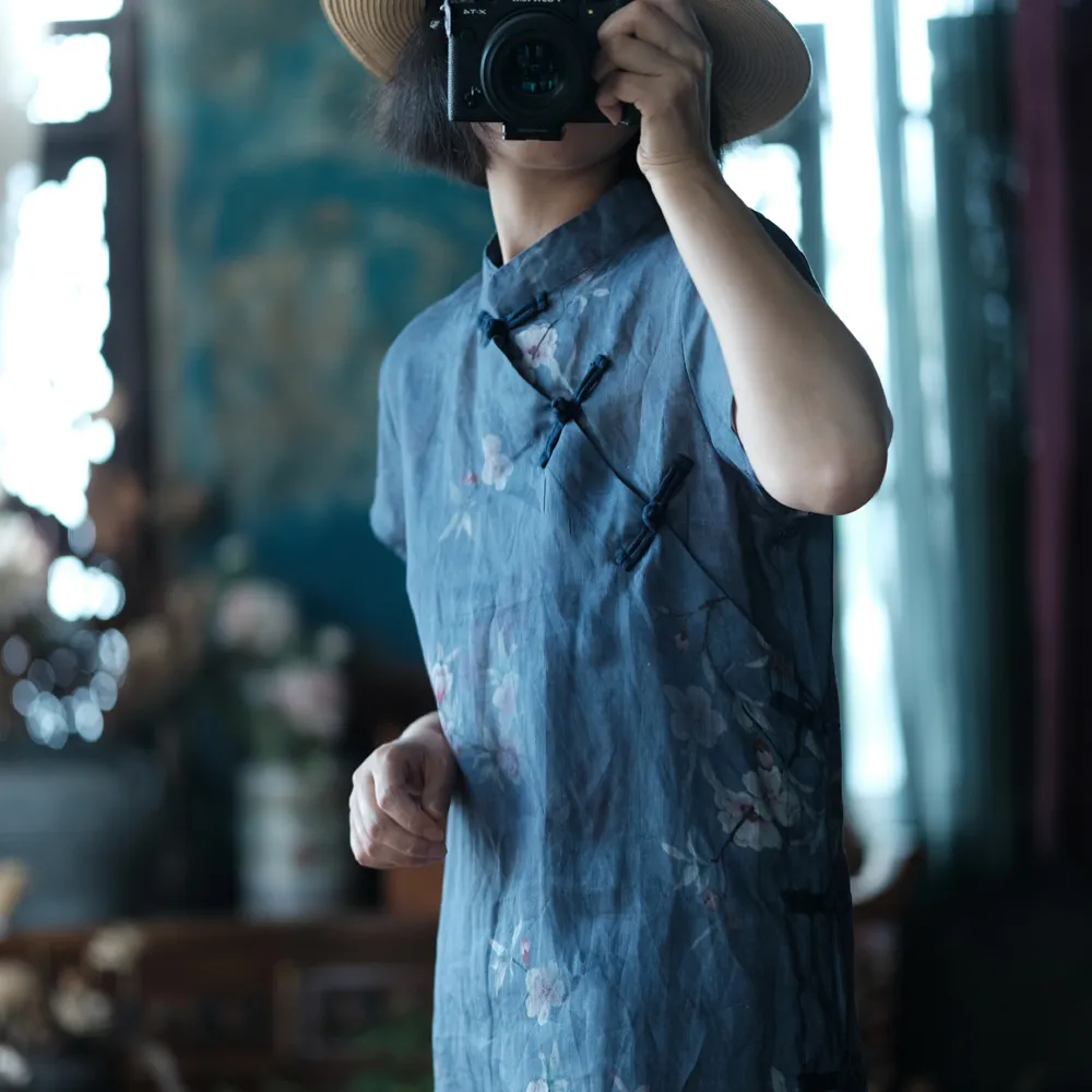 衣都精品- 新款輕盈定制苧麻立領斜襟盤扣連衣裙
