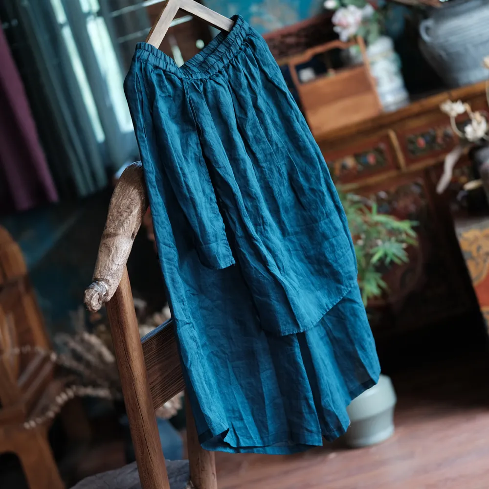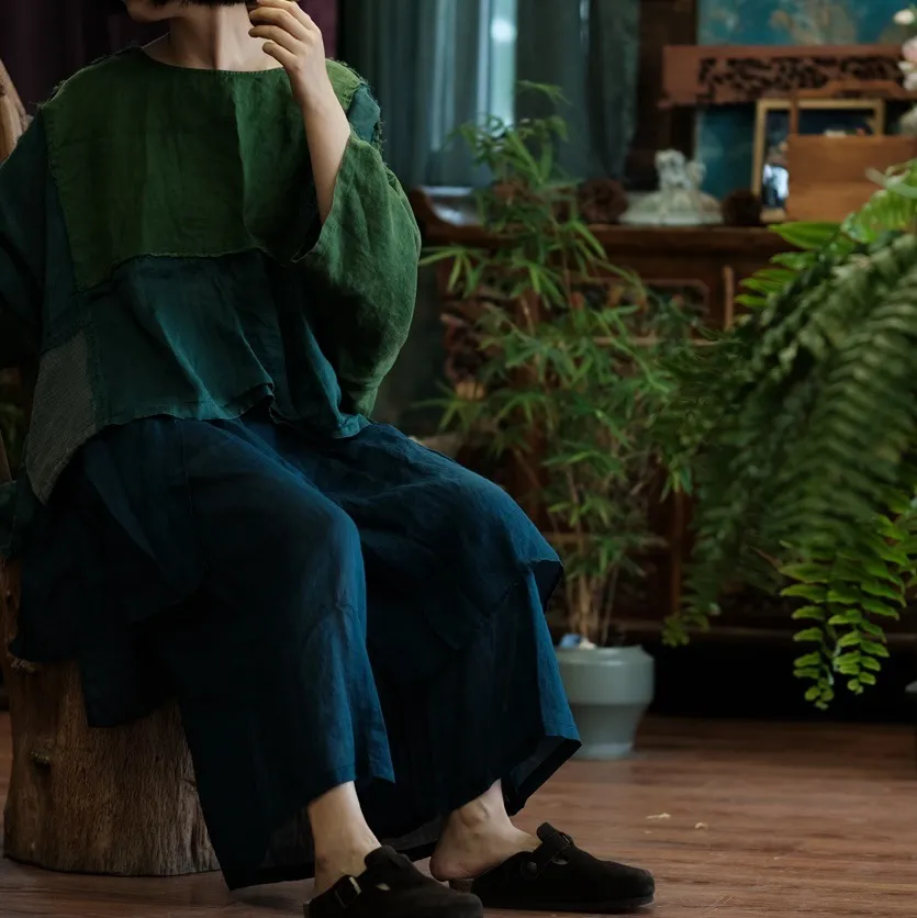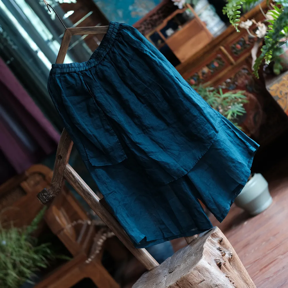 衣都精品- 新款復古做舊水洗苧麻薄款九分褲