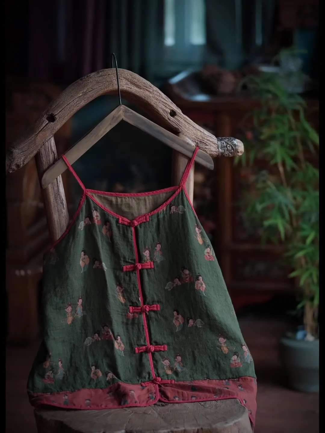 衣都精品- 新款百搭舒適棉紗寬鬆盤扣吊帶上衣