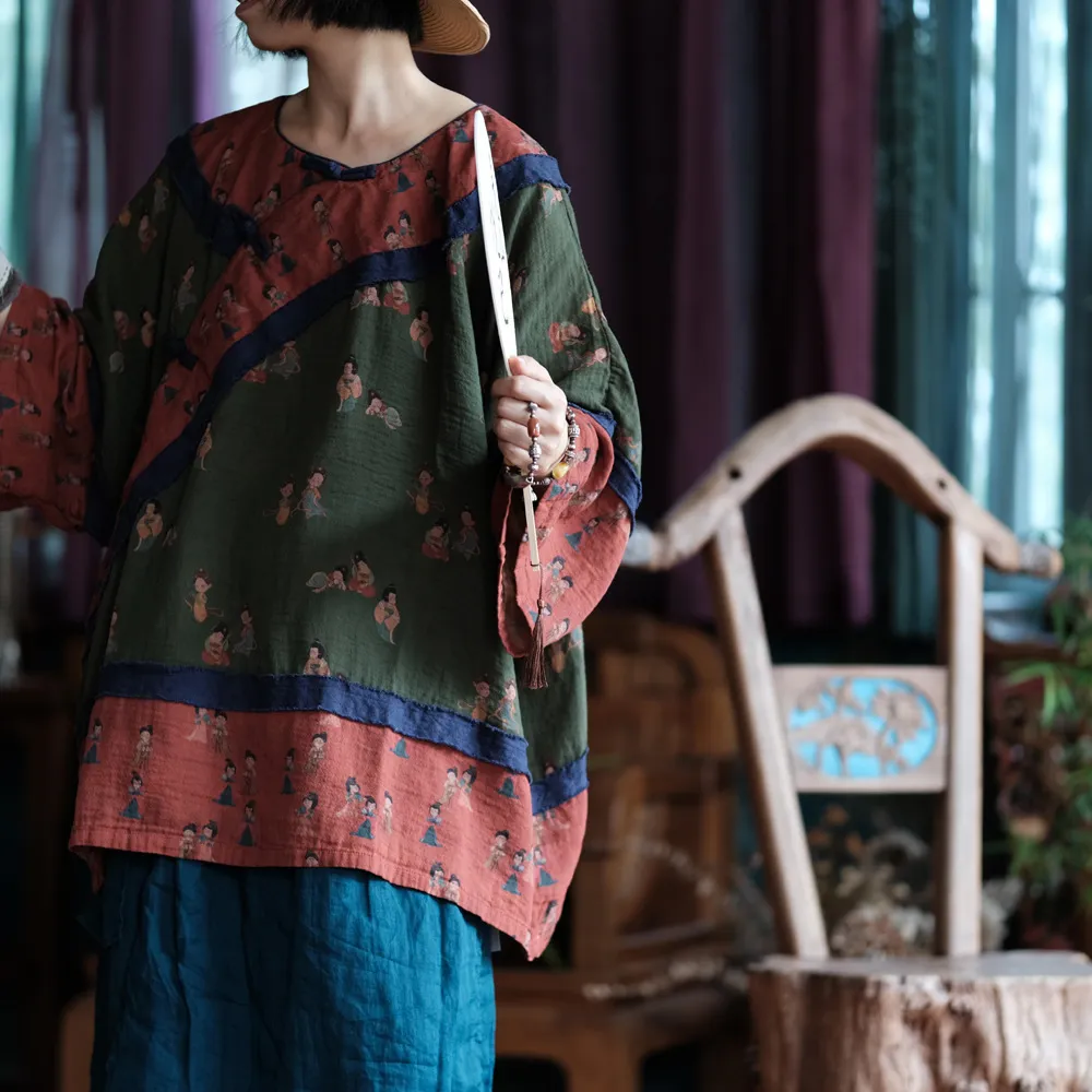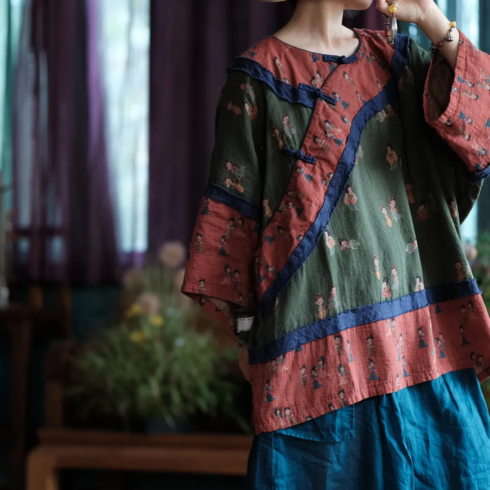 衣都精品- 新款復古純棉圓領斜襟盤扣寬鬆上衣