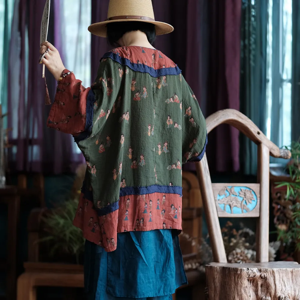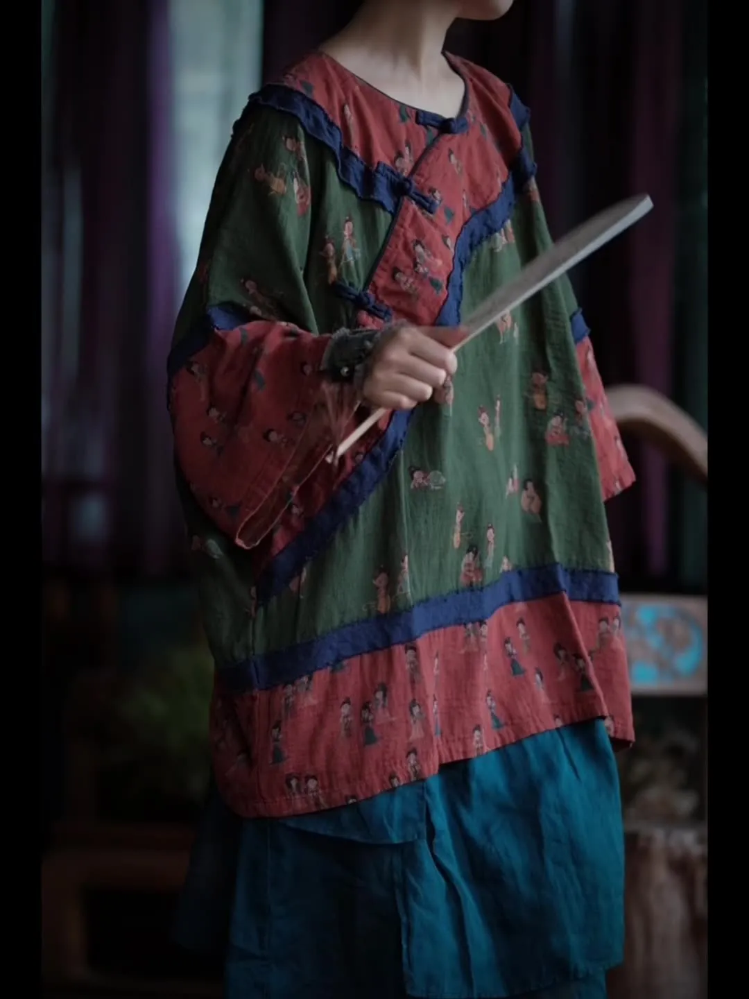 衣都精品- 新款復古做舊苧麻盤扣手工針跡寬鬆上衣