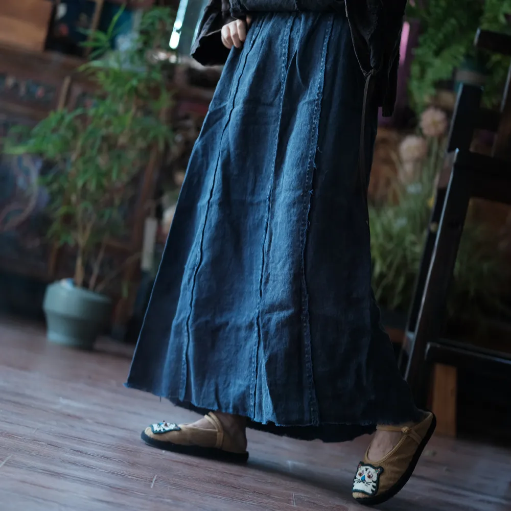 衣都精品- 新款輕盈深度雪花洗做舊毛邊鬆緊腰半身裙