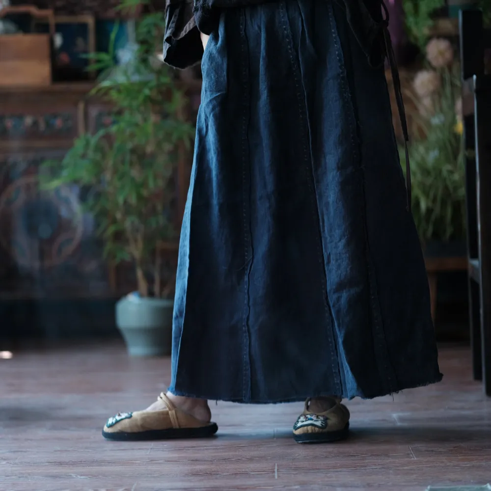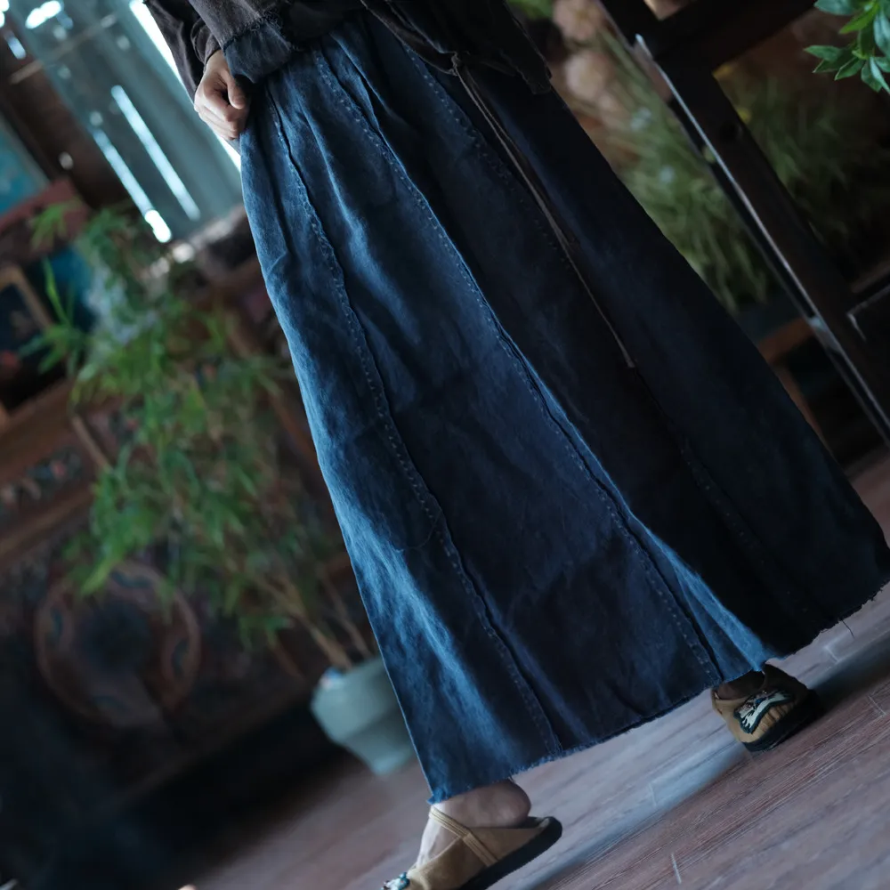 衣都精品- 新款復古做舊水洗苧麻薄款九分褲