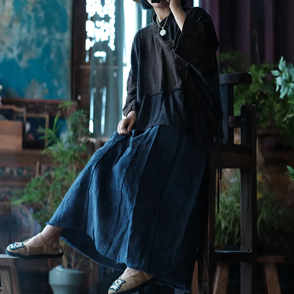 衣都精品- 新款復古做舊苧麻盤扣手工針跡寬鬆上衣