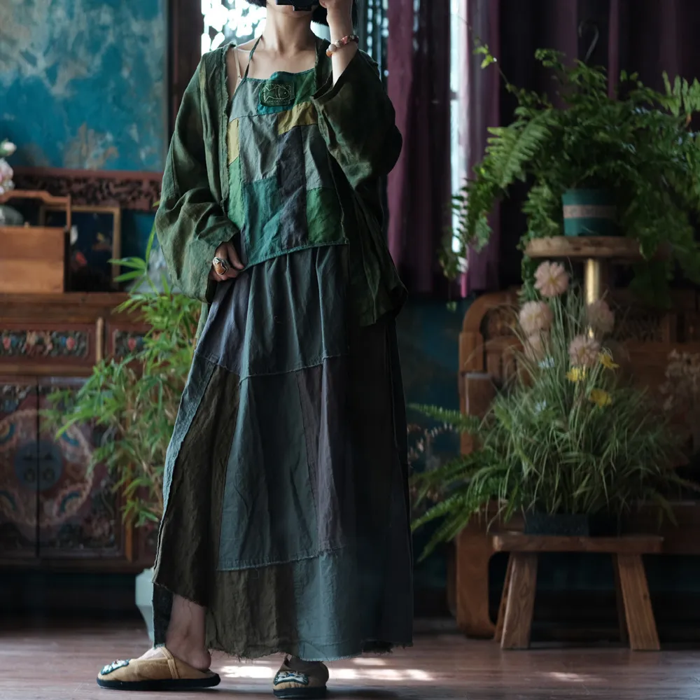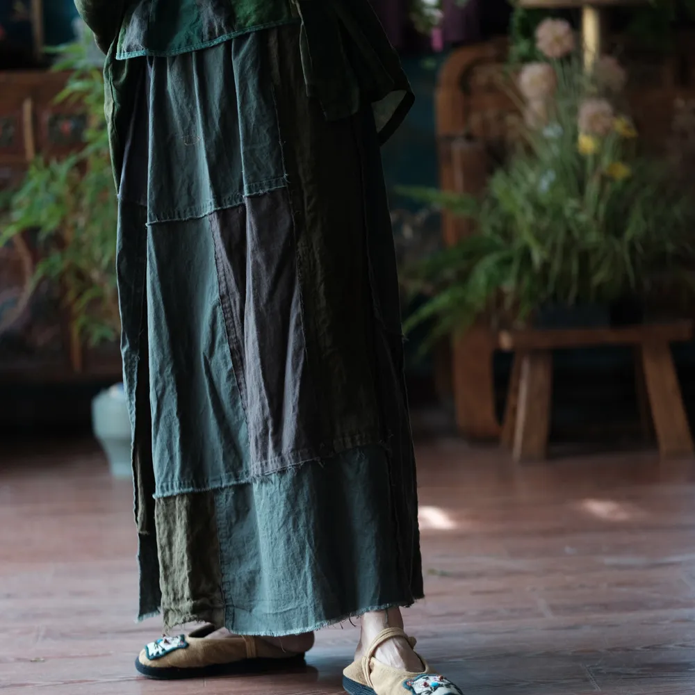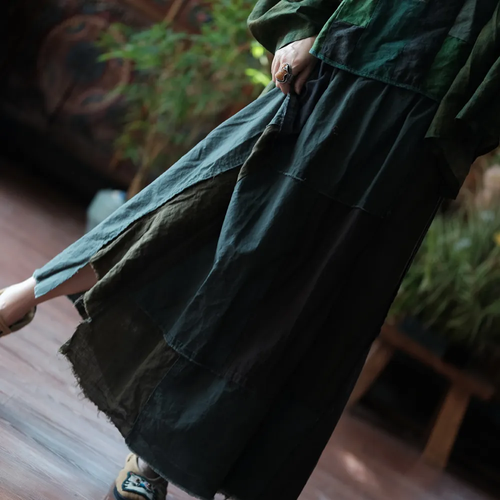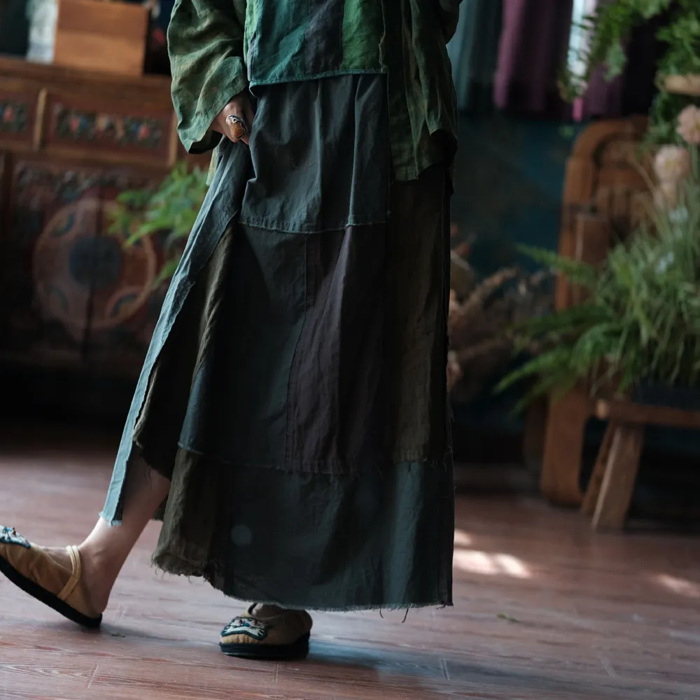 衣都精品- 新款復古文藝水洗毛邊大擺半身裙