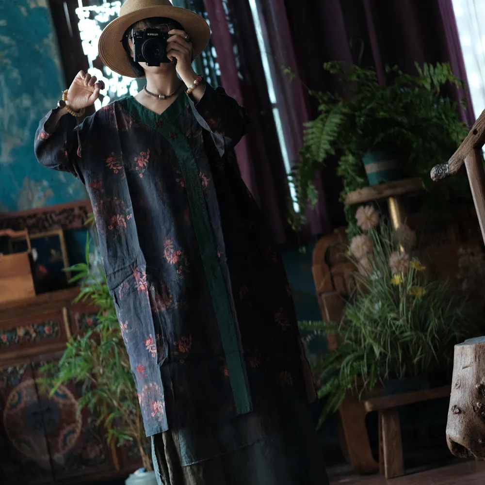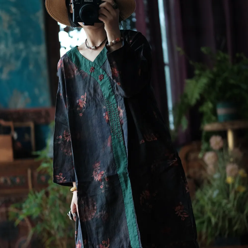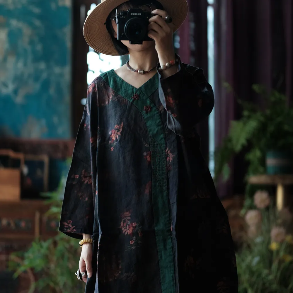 衣都精品- 新款復古仿香雲紗印花手工針跡連衣裙