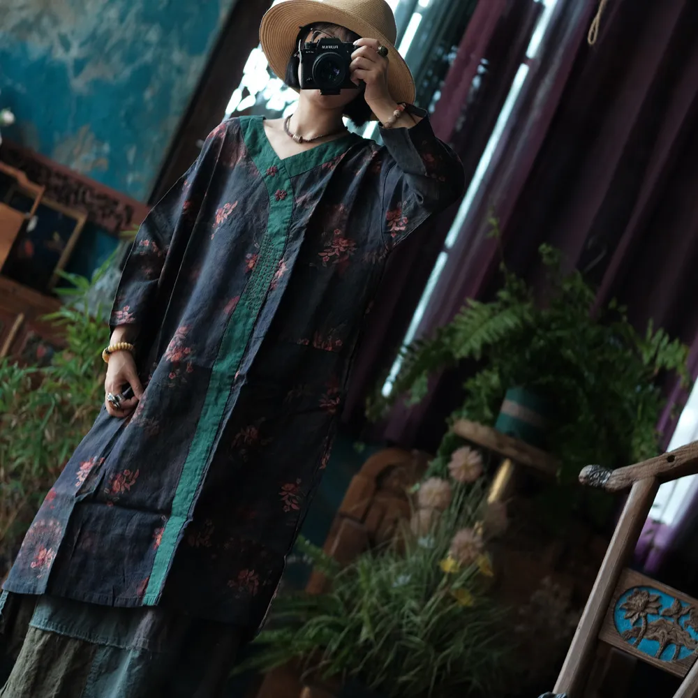衣都精品- 新款復古純棉圓領斜襟盤扣寬鬆上衣