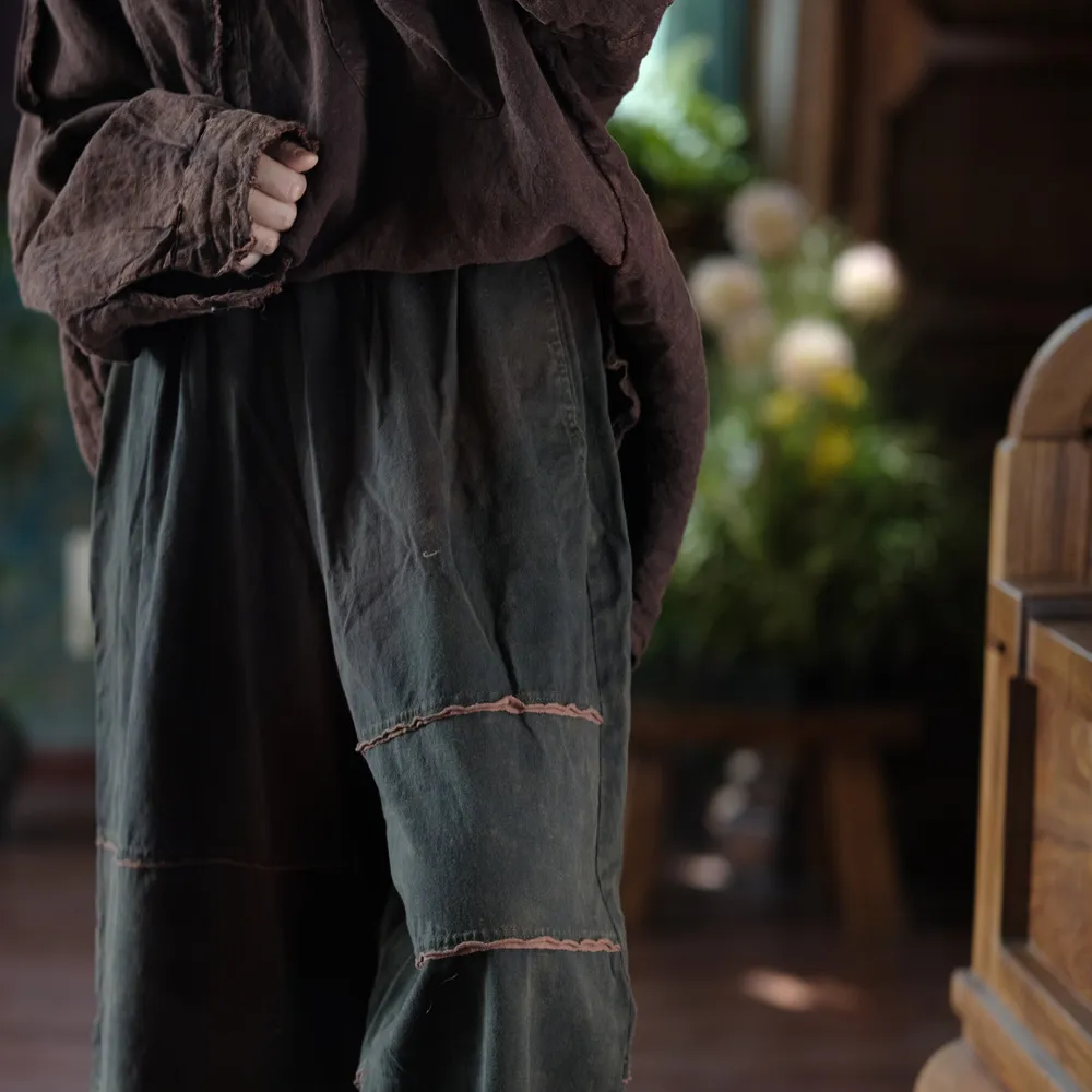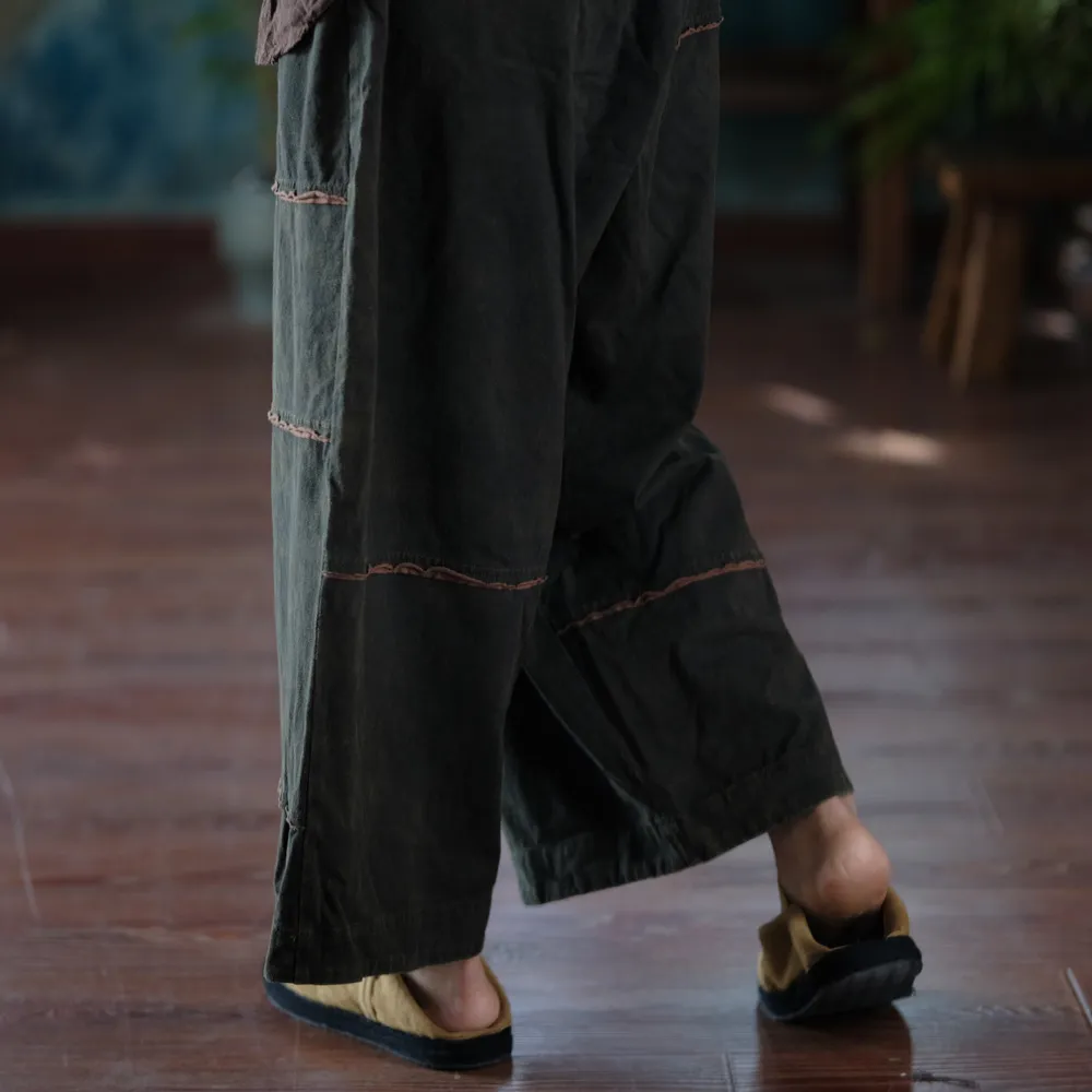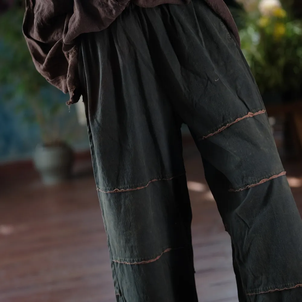 衣都精品- 新款針織毛邊休閒寬鬆鬆緊腰闊腿褲