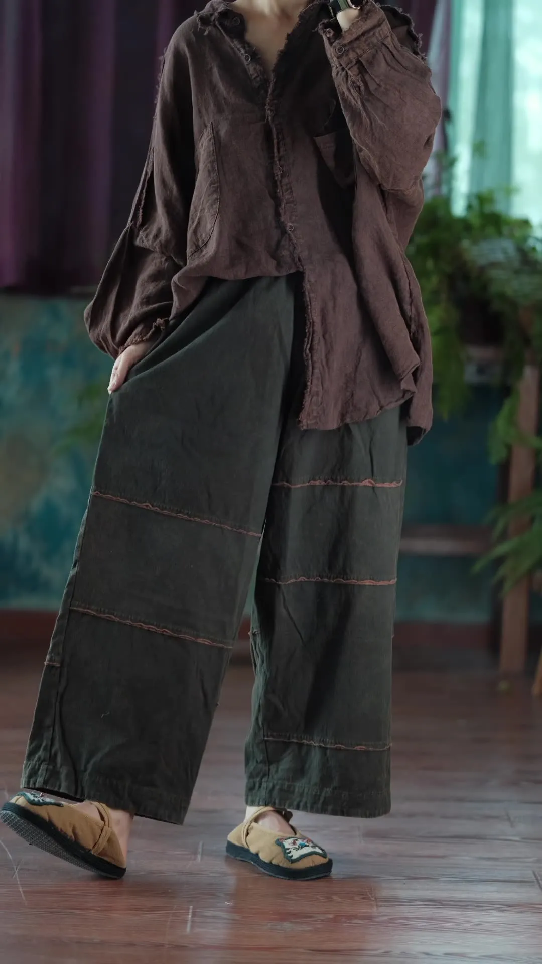 衣都精品- 新款復古純棉圓領斜襟盤扣寬鬆上衣