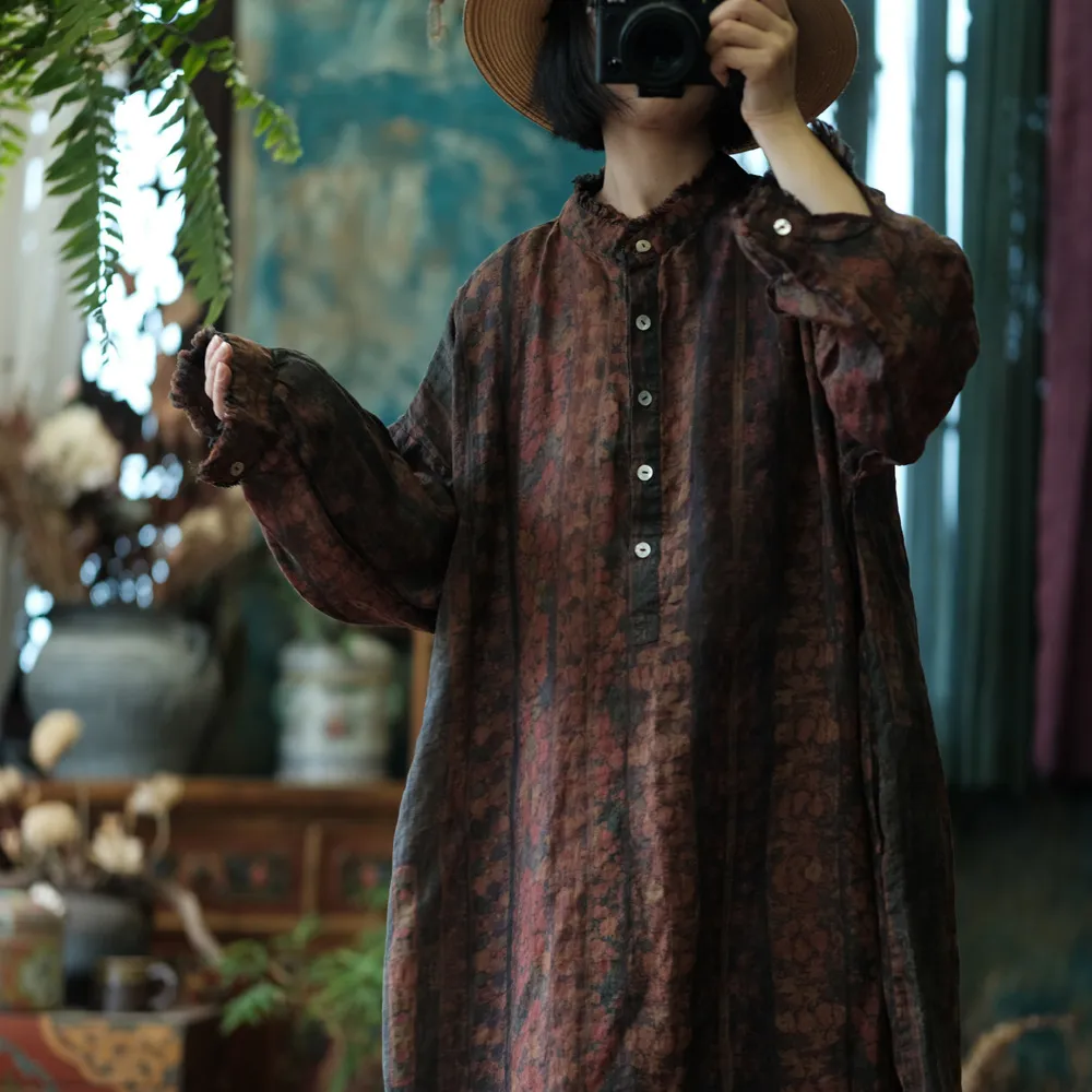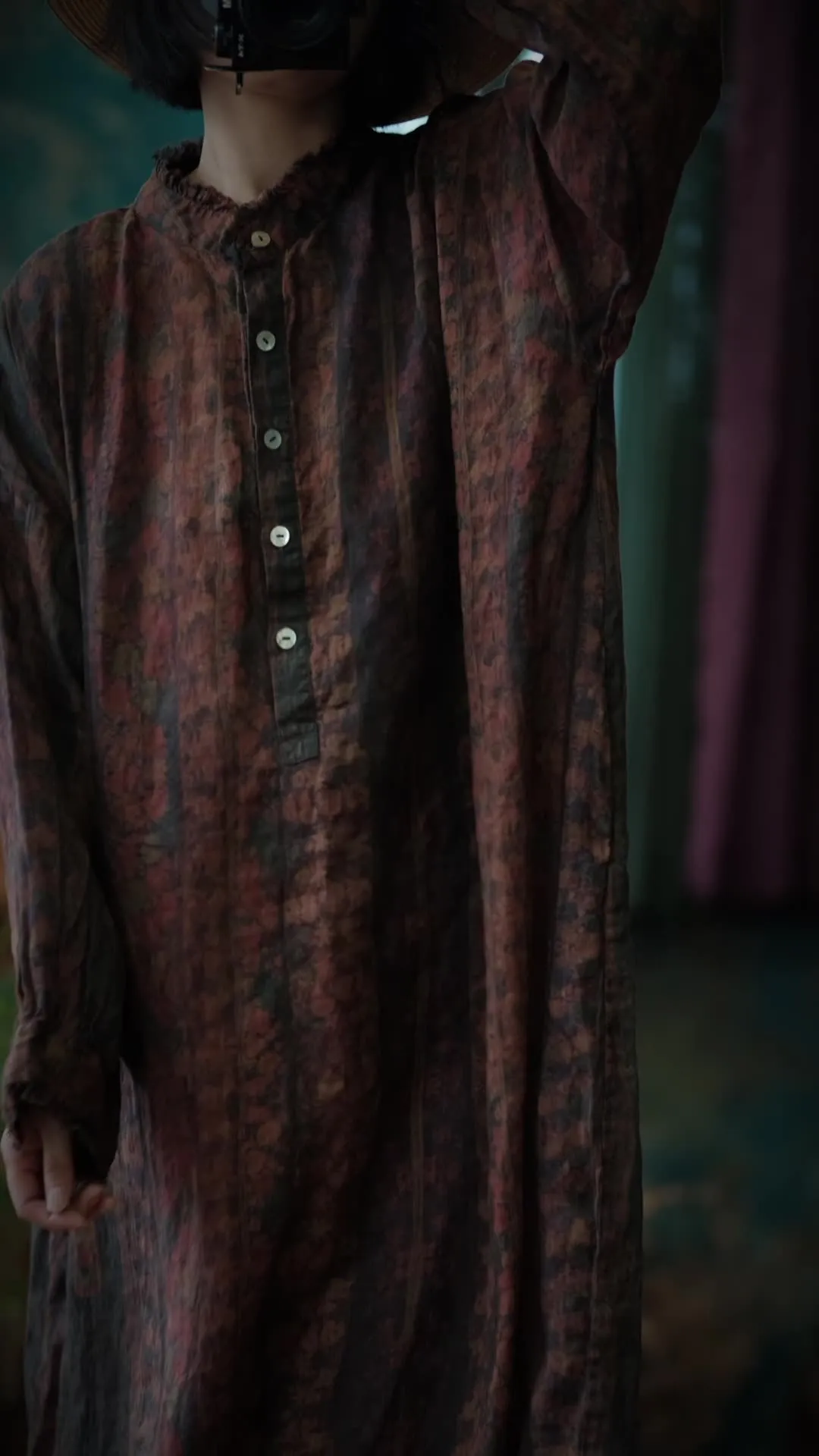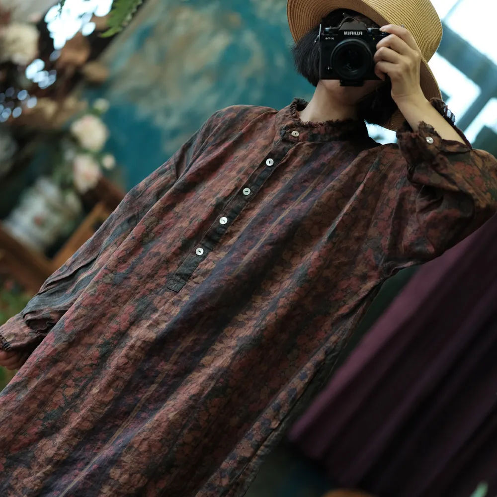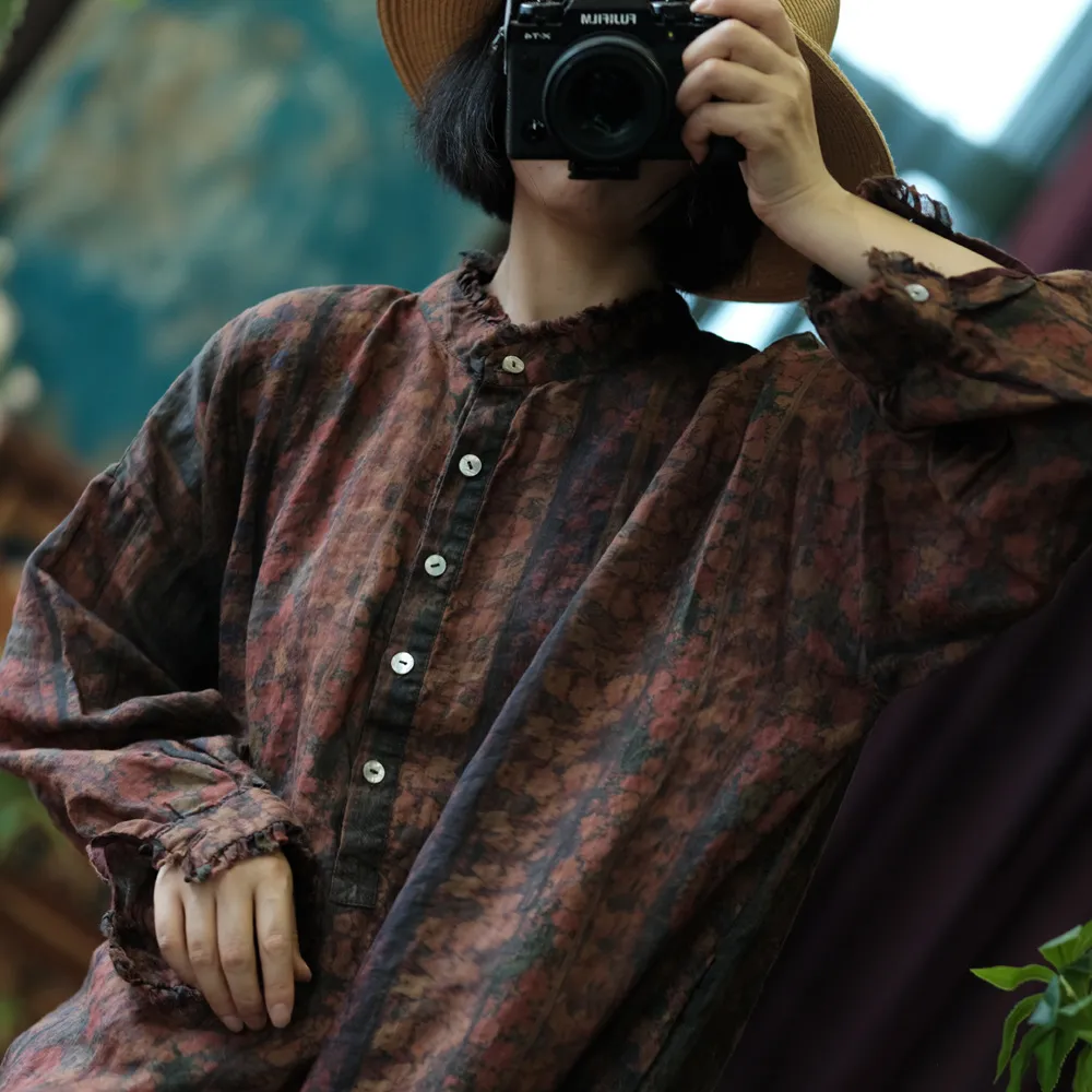 衣都精品- 新款數位印花毛邊寬鬆禪意連衣裙