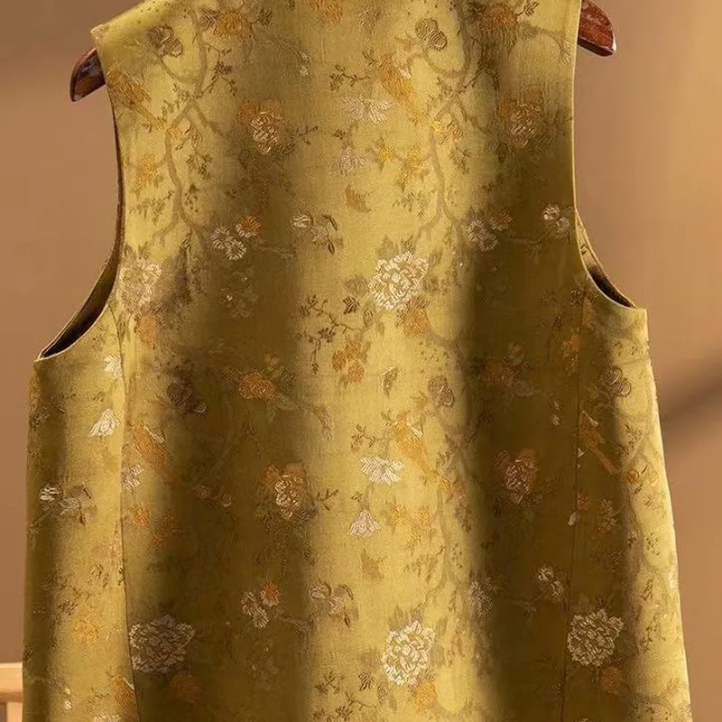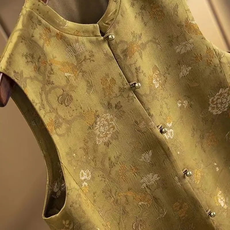 衣都精品- 新款文藝重磅定織印花緞真絲A字馬甲外套