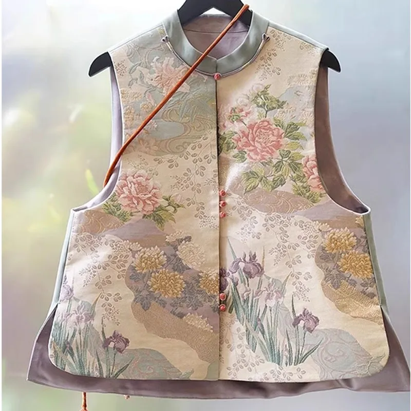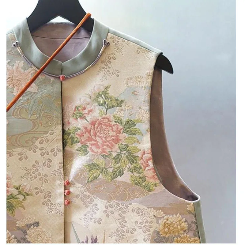 衣都精品- 新款中國風盤扣改良唐裝印花馬甲外套