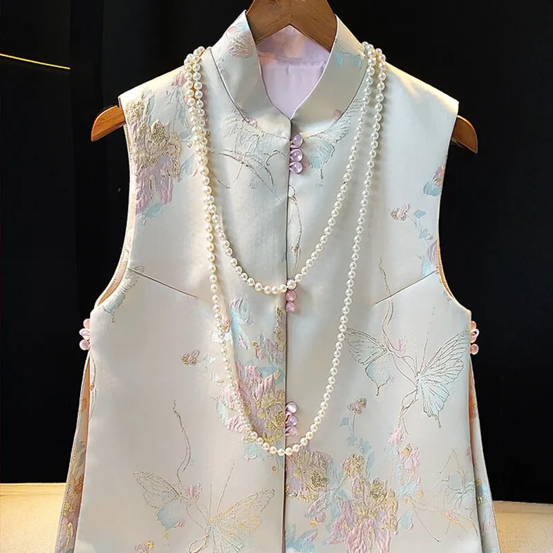衣都精品- 新款中國風盤扣改良唐裝印花馬甲外套