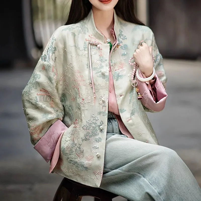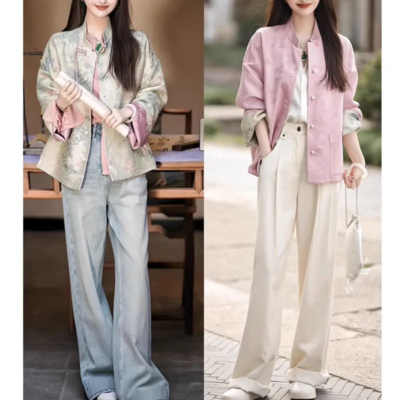 衣都精品- 新款兩面穿仿桑蠶絲繡印花外套